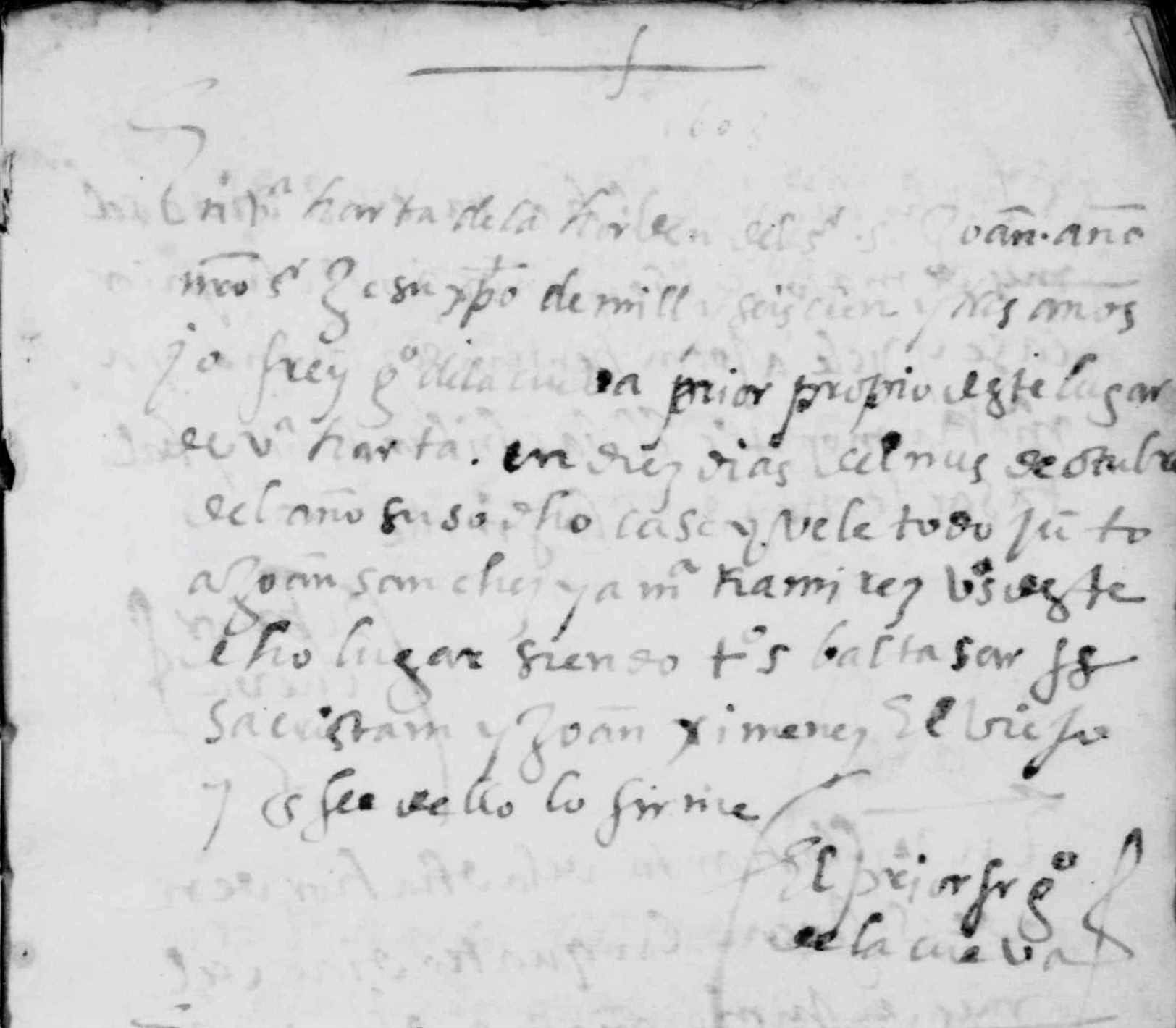 Sin embargo en Villarta y las distintas parroquias del entorno que hemos señalado anteriormente la adecuación de las normas del concilio ni fueron tan rápidas en su ejecución ni mucho menos en la forma y contenido que debían tener los registros. En Villarta, concretamente, el primer registro del libro de matrimonios, -primero de todos los registros parroquiales-, es del día 10 del mes de octubre del año 1603 y dice: » En Vª harta de la horden del Sr. San Juan año de nô sr. Jesu xpto de mill y seiscien y tres años yo frey gº de la cueva prior propio deste lugar de Vª harta en diez dias del mes de otubre del año susodicho case y vele todo junto a Joan Sanchez y Mª Ramirez vºs deste dicho lugar y siendo tºs. baltasar Fg, sacristan y Joan Ximenez el Viejo y a fe dello lo firma» [ARCHIVO DIOCESANO DE CIUDAD REAL. Parroquia de San Juan Bautista de Villarta de San Juan. Libro 1º de matrimonios]