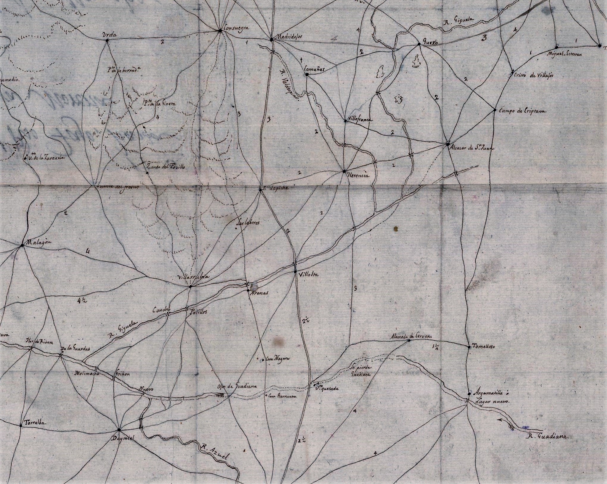 Fragmento del mapa correspondiente a la zona más prósima a Villarta de San Juan ( en el mapa Villalta)