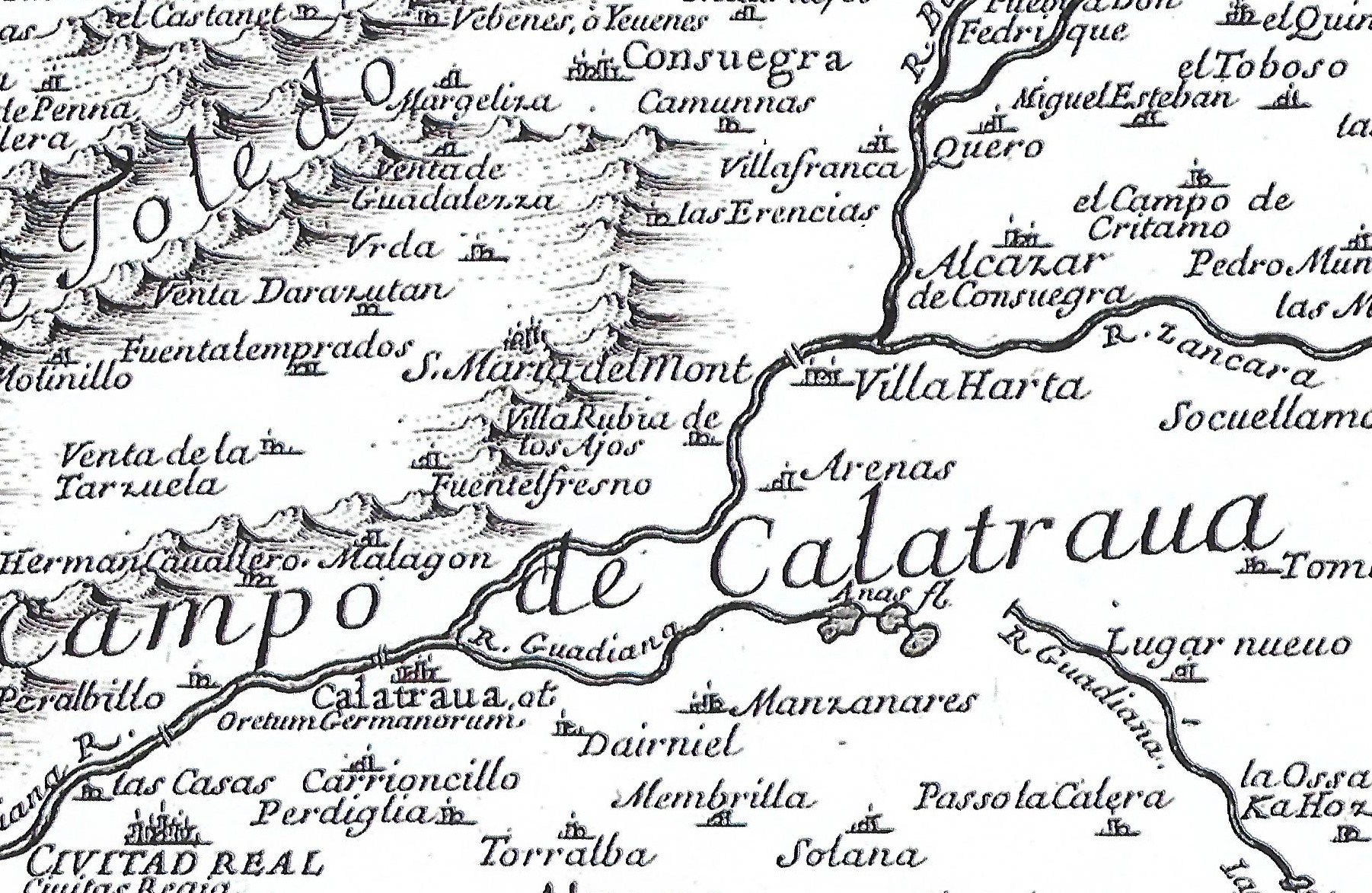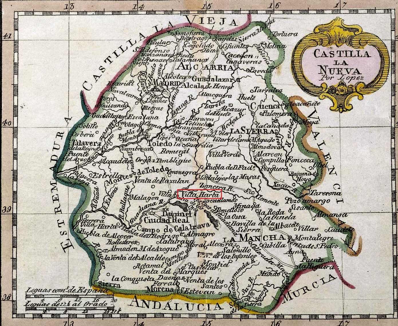 En cualquier caso hemos de hacer, antes de cerrar el tema, algunas observaciones importantes. En primer lugar la utilización de los diversos nombres de las poblaciones. Muchas veces al escribir, hablando de nuestros pueblos, -en este caso de Villarta-, escribimos el nombre sin más añadidos como si este fuera el que nos va a dar a conocer a todos los demás y de la misma forma otros pueblos. Al estudiar, -por muy encima-, algunas de las batallas más cercanas como la batalla de Uclés, la de Almonacid o la de Ocaña, nos hemos encontrado nombres muy conocidos,por ejemplo: Villarrubia, Villamanrique o el nuestro, Villarta, sin pararnos a pensar que teóricamente poníamos a los ejércitos en lugares bastantes lejanos a dónde en realidad estuvieron porque si decímos Villarrubía hay que especificar si es Villarrubia de los Ojos o Villarrubia de Santiago; si decimos Villamanrique hemos de precisar si es Villamanrique, del campo de Montiel, o Villamanrique del Tajo y si decimos Villarta ya hemos de especidicar si es Villarta de los Montes (o Villaharta de los Montes), Villarta ( de la provincia de Cuenca), Villarta de Escalona ( provincia de Toledo), Villaharta ( Provincia de Córdoba), Villarta-Quintana ( de la Rioja) o Villarta de San Juan ( o Villaharta de San Juan) [ En nuestras investigaciones hemos visto como nuestro puente había sido restaurado en una ocasión acreditada por numerosos expertos cuando la citada restauración se había realziado en el puente de Villarta, en Villarta de los Montes; otras veces teniamos que advertir de que nuestro Capitan General y Gobernador de Puerto Rico, en el siglo XVII, no era natural de Villaharta de Córdoba, sino de nuestro pueblo, de Villaharta del Priorato de San Juan o, finalmente, por no poner más ejemplos, el puente que restauró el Maestro de Cantería, Martin de Artache, en 1610, era nuestro puente romano o viejo, y no era el de Villaharta ( Córdoba), donde ni había puente.