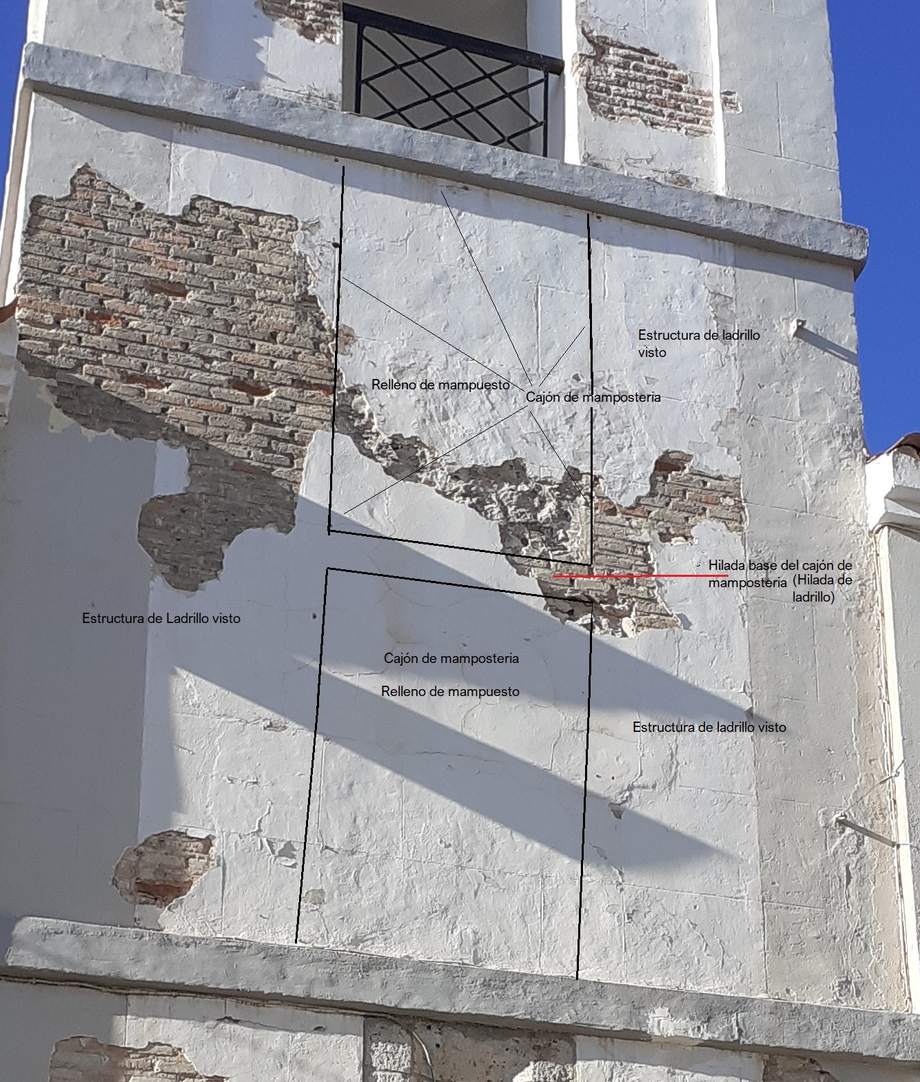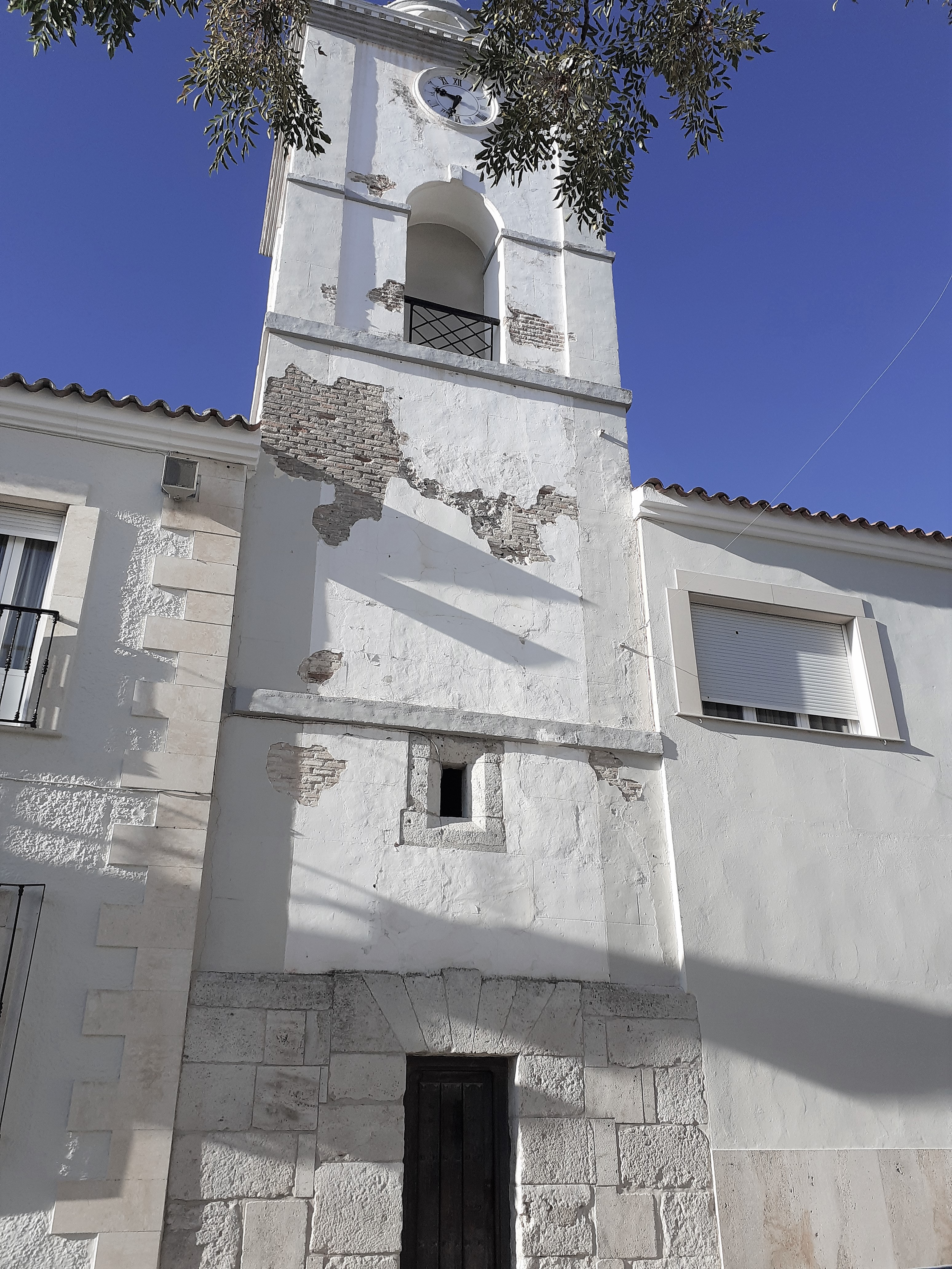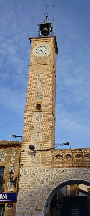 Quizás cansada de ser pintada y repintada sin que nunca, según muchos, se haya «atinado» con los colores apropiados que realzasen a nuestra antigua y erguida torre del reloj, parece como si la propia torre hubiese tomado la decisión de poner las cartas sobre la mesa para dar a conocer su cara tapada durante mucho tiempo por un velo de argamasa que tapaba «el vulgar» ladrillo que configuraba su estructura alternándolo con otras partes de mampostería. [En cualquier caso para no quitarle importancia a la construcción de nuestra torre hay que señalar que su estilo de construcción es el llamado «aparejo toledano» que en realidad son cajones de mamposteria -procedimiento de construcción en que se unen las piedras que conforman un «cajón»-, con argamasa, sin ningún orden de hiladas o tamaños separados, los citados cajones, por hiladas, más o menos anchas, de ladrillo]. A lo que iba. Se estaban preparando los pintores para darle un color adecuado que hiciese resaltar la torre del edificio del ayuntamiento, -en el cual se quedó aprisionada la torre-, cuando una buena parte, al menos sigificativa, del revoco o revestimiento exterior a base de mortero de cal se desprendió dejando perfectamente al descubierto el ladrillo y parte de los cajones de mamposteria de nuestra antigua torre, de aparejo toledano con una construcción de estilo mudejar, aunque ya no fuese un estilo muy utilizado en el momento en que fue construida la torre, aunque si a imitación, -perfecta, de la torre de la Iglesia de Santa María, conocida como la «iglesia vieja» (En sentido cronológico que no en su estado de conservación). Pasaba en ese momento por la plaza y, parece ser, que como Cronista de la Villa fue requerida mi opinión, aunque esta fuese en cuanto a tiempos históricos y no a formas ni elementos de construcción. Se formó un grupillo con los pintores, algún albañil de una obra cercana, algun funcionario municipal, la alcaldesa y un concejal que departimos con distintas ánimos ya que donde algunos veíamos una oportunidad de rescatar un antiguo monumento y restituirlo a su origen, otros, las autoridades, veían nuevos problemas en sus quehaceres cotidianos. Aunque todos creiamos que era una ocasión única otros tenían en cuenta los problemas que se les venían encima.