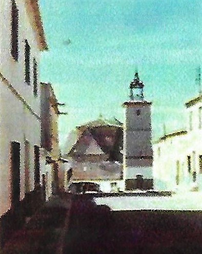 Pero lo que si queremos destacar es la presencia de la torre del Relox y Ayuntamiento, como cita Domingo de Aguirre y que por tanto debió ser edificada en ese transcurso de cien años que hay entre la acuarela de Baldi y el grabado de Domingo de Aguirre. A pesar del escaso detalle del grabado de Aguirre todo parece indicar que es una estructura parecida a la de la torre de la iglesia, con diversos cuerpos, de los que solo dos y el tejadillo, se aprecian en el dibujo. El tejadillo es culminado con una cubierta a cuatro aguas que sirve de apoyo a un rollo cilindrico en los que se coloca una veleta. La construcción de esta torre y en esos momentos sólo tendría un sentido de prestigio como una construcción de caracter meramente civil y en el centro de la población donde evidentemente descansaría el reloj visible para toda la población de aquel momento [No hemos de olvidar que la iglesia de Santa María la Mayor se encontraba a las afueras del pueblo justo sobre la extendida depresión del Gigüela y por aquellos momentos se había construido el primer cementerio separado y fuera de la iglesia parroquial. No parecía un lugar muy apropiado para expansión de la población y su relativa lejania del núcleo de población daría lugar a bastantes inquietudes como veremos]. La cuestión de prestigio no era tema baladí y de ahí que muchos pueblos compitieran entre sí para construir iglesias que no se correspondían con las posibilidades de la villa. En un pueblo como Villaharta de San Juan, con una población a mediados del siglo XVIII, no superior a 650 almas, disponer de tres torres: la de la iglesia, la de similar estructura y reciente del Ayuntamiento y quizás la pequeña espadaña de la ermita de la Virgen de la Paz, pudo ser el origen de una cancioncilla que siglos después José Pérez divulgó: