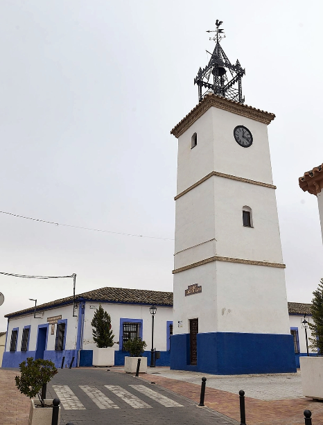 Y con ese arreglo la torre del reloj quedo remozada con una barandilla en el tramo superior y sobre ese tramo un templete de obra para colocar la campana. La plaza quedó con esa remozada torre junto al antiguo edificio del Ayuntamiento, edificio que en la parte de la calle la Carcel ( ya en ese momento Calvo Sotelo y en la actualidad de la Torre), hasta finales de la década de los sesenta en que se derribó totalmente, el antiguo ayuntamiento para construir un nuevo, siendo alcalde Cayetano Garrido Meco. Posteriormente ya siendo alcalde Angel Antonio Ruiz Palomares, se amplio el edificio con la construcción de una nueva ala con fachada a la plaza del cura, del altillo, José Antonio y actualmente plaza de la Constitución. Y llegamos hasta aquí dejando ver si la torre recupera su antigua estructura o sigue como antes, ella por si acaso, la torre, ha empezado ella sola a quitarse parte de la mascara como dando a entender que quiere cambiar…