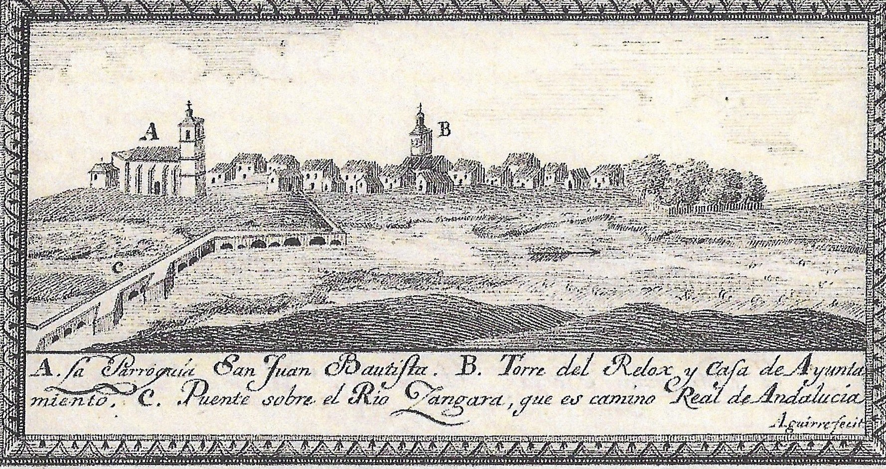 Todo lo anterior se refería a los últimos años de presencia de la Casa de Austria en la monarquía española. Las citadas obras de reparos del puente son ordenadas bajo el reinado de Carlos II, que falleció el 1 de noviembre de 1700, iniciándose la Guerra de Sucesión que terminó con la proclamación del rey Felipe V con el que se establece la Casa de Borbón al frente de la Monarquia española. Durante los años 1766 y 1788 es Gran Prior de San Juan el Infante Don Gabriel que acomete grandes proyectos en el Priorato de San Juan ( en casi todas las villas, aldeas y lugares del Campo de San Juan) con la presencia de importantes arquitectos como Juan de Villanueva y algunos de sus ayudantes. Las obras de modernización de las iglesias del Campo de San Juan se realizan constantemente y aquí en nuestro pueblo se realizan algunas de ellas con la supervisión del citado arquitecto y de su ayudante Joseph de Palacios. Por esa época Domingo de Aguirre realiza su importante libro «Histórica descripción del Priorato de San Juan de Jerusalen en Castilla y León». De dicho trabajo se conservan varios manuscritos en la Biblioteca de Palacio, en la Biblioteca Nacional y otro en manos de particulares de Consuegra que se utilizó para la edición realizada por la Diputación Provincial de Toledo. Lo interesante de este trabajo de Domingo Aguirre, ingeniero militar que terminó siendo Mariscal de Campo e Ingeniero Director del Ejercito, fue la serie de grabados de todos los pueblos del Priorato o Campo de San Juan [Puede verse el «poyete» de 27 de diciembre de 2019: «Las descripciones gráficas de Villarta, según los tres manuscritos de Domingo de Aguirre»].