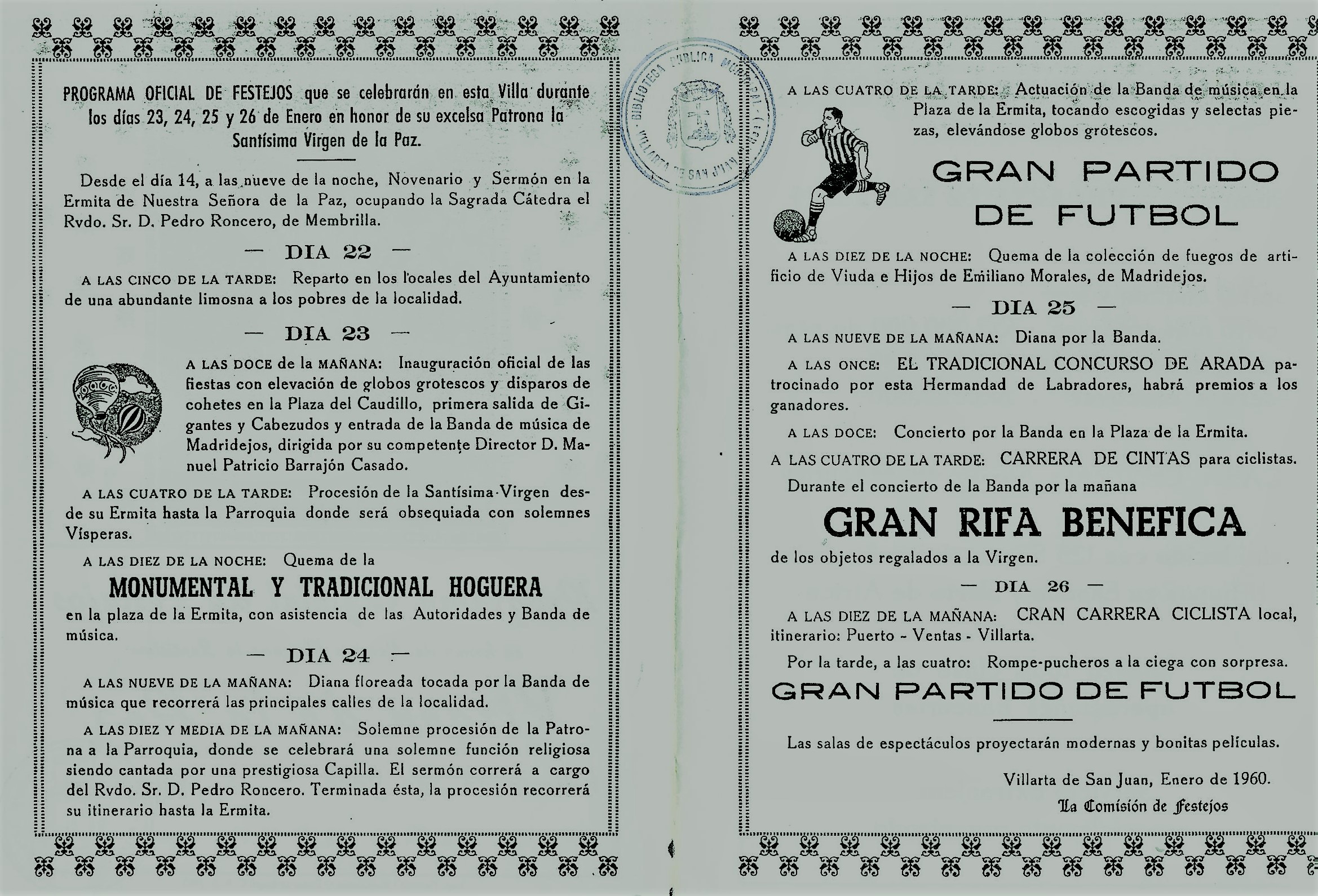 Programa Oficial de Festejos de «Paces» del año 1960 [Fuente: BPM de Villarta de San Juan ]