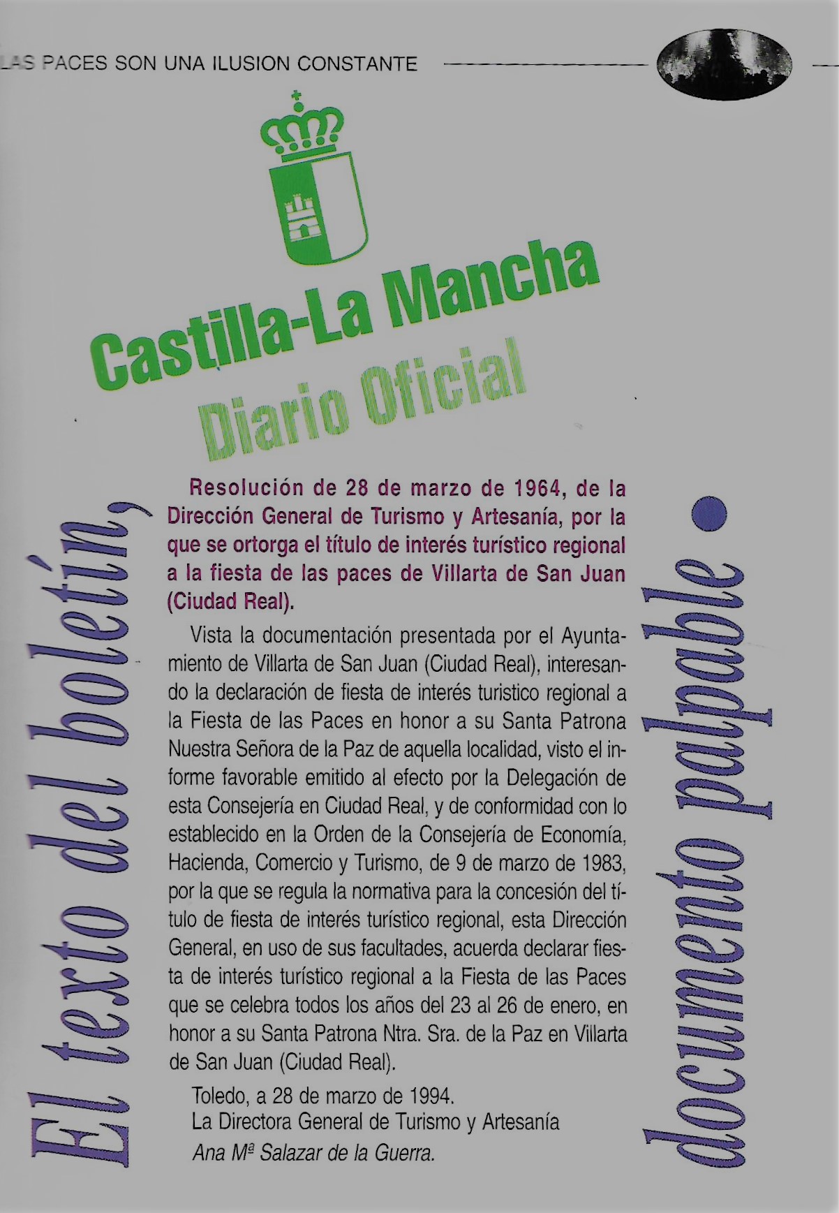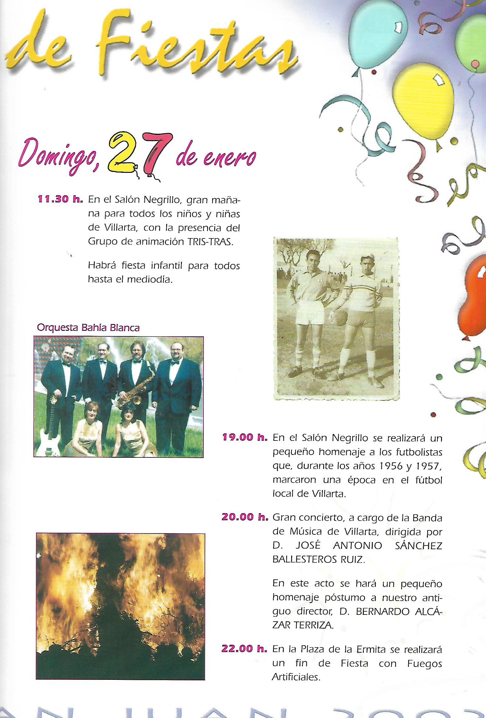 A partir de este programa y durante varios años se publica en los programas un apartado que el autor (Desconocemos quien fue el autor de esta sección) llama «La marcha del tiempo» y en el que dice: «Traemos a continuación varias portadas en facsimil de programa de fiestas de Villarta de San Juan y así mismo, en sucesivas publicaciones, iremos reflejando las siguientes por orden cronológico, Junto a ellas, nombres de alcaldes de nuestro pueblo y fechas que permanecieron al frente del Ayuntamiento , situándonos de entrada en el año 1928 en lo concerniente a los alcaldes. Sin embargo, y muy a pesar nuestro, el archivo sólo nos permite disponer de portadas desde 1946….» [Al final de esta serie, en el programa del año 1998, el autor escribe: «Desde estas líneas nuestro más sincero agradecimiento a Santiago Gómez-Lobo y familia porque año tras año nos facilita programas antiguos que no poseemos. Gracias por todo.]