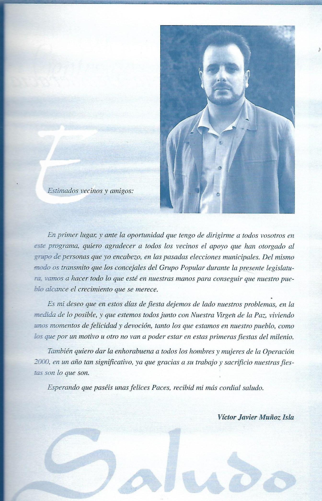 Programa de «Paces» del año 2000. Saludo del portavoz del Grupo Popular (Programas de festejos. Colección particular)