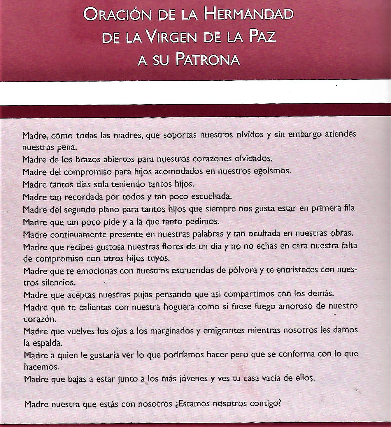 Programa de «Paces» del año 2003. Oración de la Hermandad a su Patrona ( Fuente: Programas de festejos. Colección personal)
