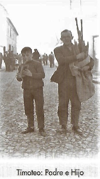 En todos los programas de «Paces» que vamos viendo, observamos como, poco a poco, el fondo de lo que se quiere decir y la forma de decirlo van ganando puntos. Este del año 2004, visto con los ojos actuales para los cuales una programa que inicia – una vez hechos los saludas propios de protocolo: los Reyes, el Presidente de CLM, el Presidente de la Diputación, el Delegado de la Junta- con las funciones de cada uno de los concejales y junto a esas funciones una foto de todos ellos juntos, incluso no necesariamente separados por grupos, es actualmente impensable. Es un programa a tener muy en cuenta no sólo por sus aspectos positivos sino -todas las cosas buenas tiene algún defectillo- por la ocasión perdida de guardar para siempre, o al menos para mucho tiempo, una información gráfica humana de nuestras gentes, de las épocas en que vivieron; muy pocas veces el apartado de «fotos para la añoranza» ha podido ser tanto y sin embargo ha hecho que para algunos suponga un poso de tristeza. Fotos de añoranza no significa fotos cubiertas por una pátina de antigüedad falsa que lo único que hace es que no apreciemos la vida de los nuestros.Me imagino que en la época actual, estas fotos podrán recuperar lo que encierran pero de momento, serán ocasiones perdidas. He recuperado dos, para que nos demos cuenta lo que puede ser este espacio para todos nosotros y los que dentro de algún tiempo lo puedan ver. En una de ellas la carretera y mis amigos Ramón (+) y su primo Pacito, con sus padres tirando cohetes, al lado suyo parece apreciarse el pendón de la Hermandad pero poco más. En la otra, parece ser la calle Postas y los Timoteos, padre e hijo, apreciandose el buen empedrado de la calle…