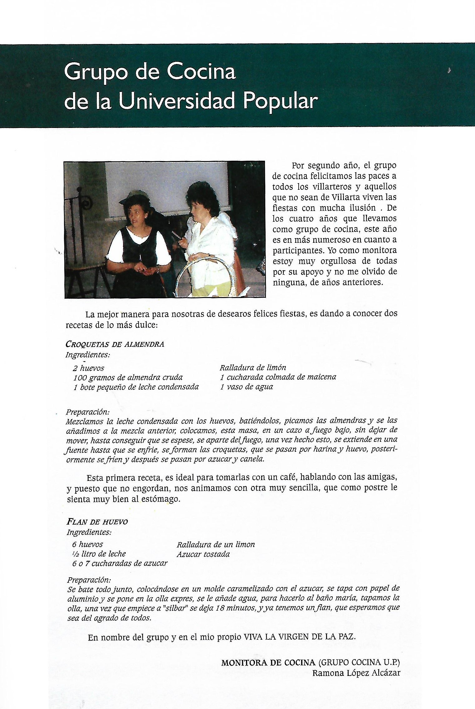 Programa de «Paces» del año 2007. Grupo de cocina de la Universidad Popular. (Fuente: Programas de festejos. Colección particular)