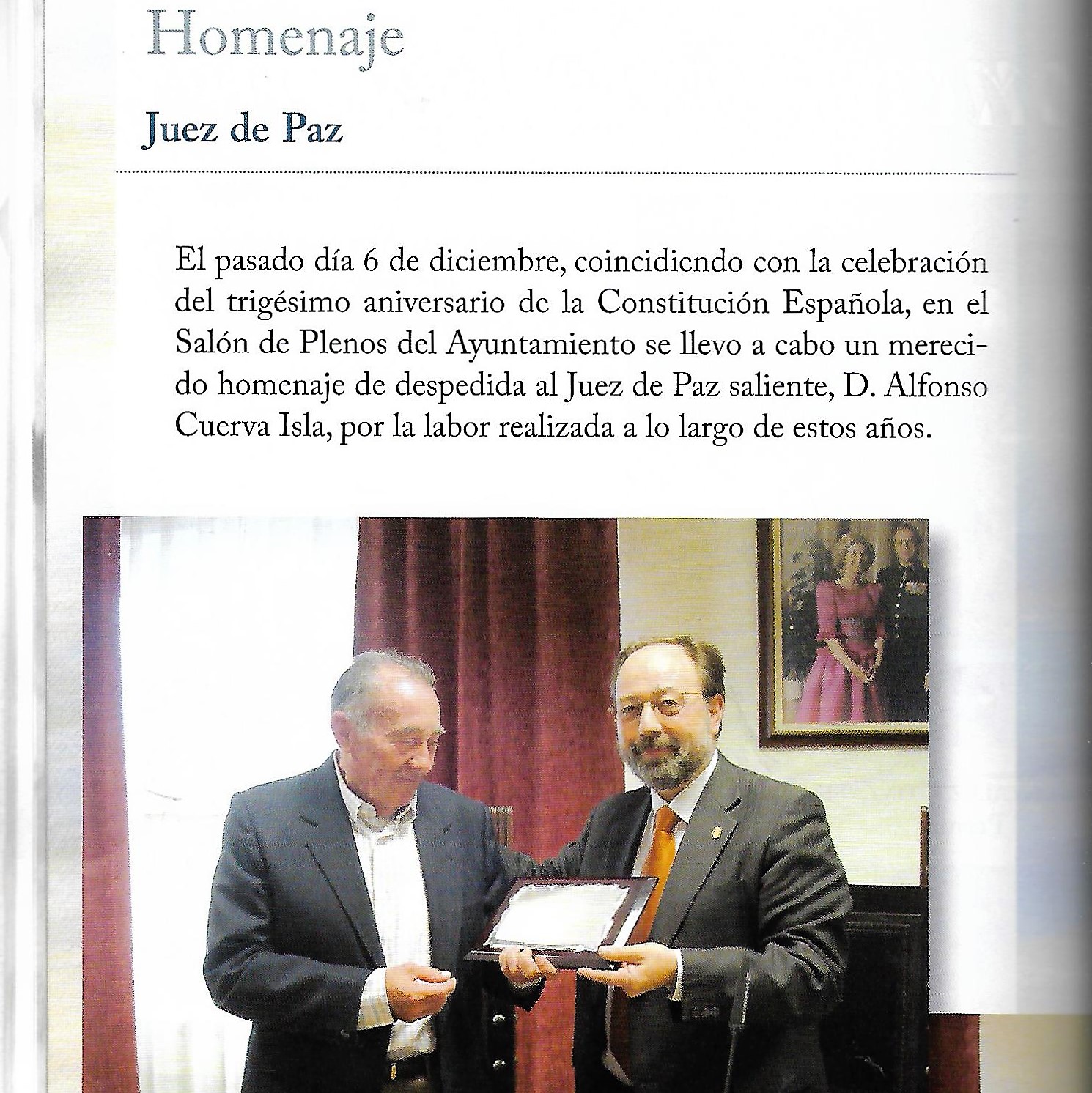 Programa de «Paces» del año 2009. Homenaje de despedida a Alfonco Cuerva como Juez de Paz. (Fuente: Programas de festejos. Colección Particular)