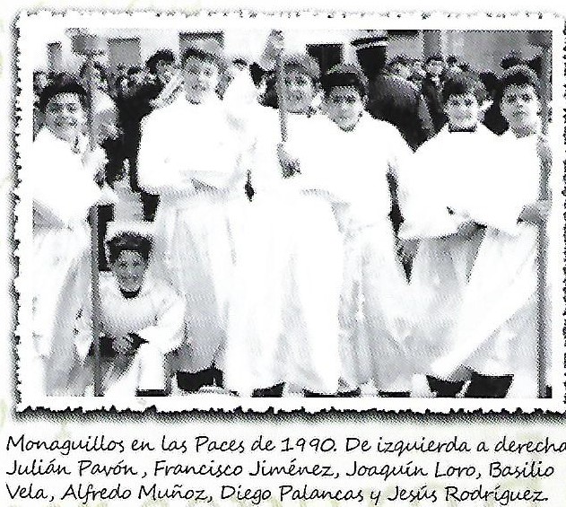 En todos los programas de «Paces» que vamos viendo, observamos como, poco a poco, el fondo de lo que se quiere decir y la forma de decirlo van ganando puntos. Este del año 2004, visto con los ojos actuales para los cuales una programa que inicia – una vez hechos los saludas propios de protocolo: los Reyes, el Presidente de CLM, el Presidente de la Diputación, el Delegado de la Junta- con las funciones de cada uno de los concejales y junto a esas funciones una foto de todos ellos juntos, incluso no necesariamente separados por grupos, es actualmente impensable. Es un programa a tener muy en cuenta no sólo por sus aspectos positivos sino -todas las cosas buenas tiene algún defectillo- por la ocasión perdida de guardar para siempre, o al menos para mucho tiempo, una información gráfica humana de nuestras gentes, de las épocas en que vivieron; muy pocas veces el apartado de «fotos para la añoranza» ha podido ser tanto y sin embargo ha hecho que para algunos suponga un poso de tristeza. Fotos de añoranza no significa fotos cubiertas por una pátina de antigüedad falsa que lo único que hace es que no apreciemos la vida de los nuestros.Me imagino que en la época actual, estas fotos podrán recuperar lo que encierran pero de momento, serán ocasiones perdidas. He recuperado dos, para que nos demos cuenta lo que puede ser este espacio para todos nosotros y los que dentro de algún tiempo lo puedan ver. En una de ellas la carretera y mis amigos Ramón (+) y su primo Pacito, con sus padres tirando cohetes, al lado suyo parece apreciarse el pendón de la Hermandad pero poco más. En la otra, parece ser la calle Postas y los Timoteos, padre e hijo, apreciandose el buen empedrado de la calle…