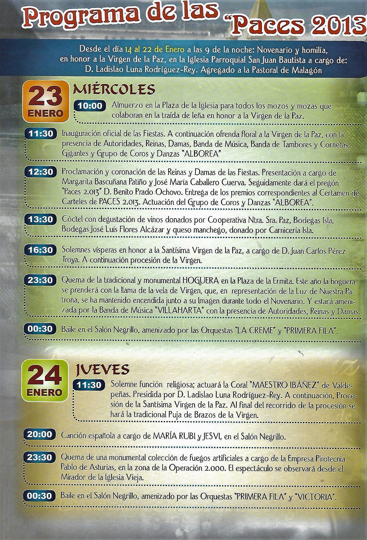 Programas de «Paces» del año 2013. Programa oficial de festejos (Fuente: Programa de festejos. Colección particular)