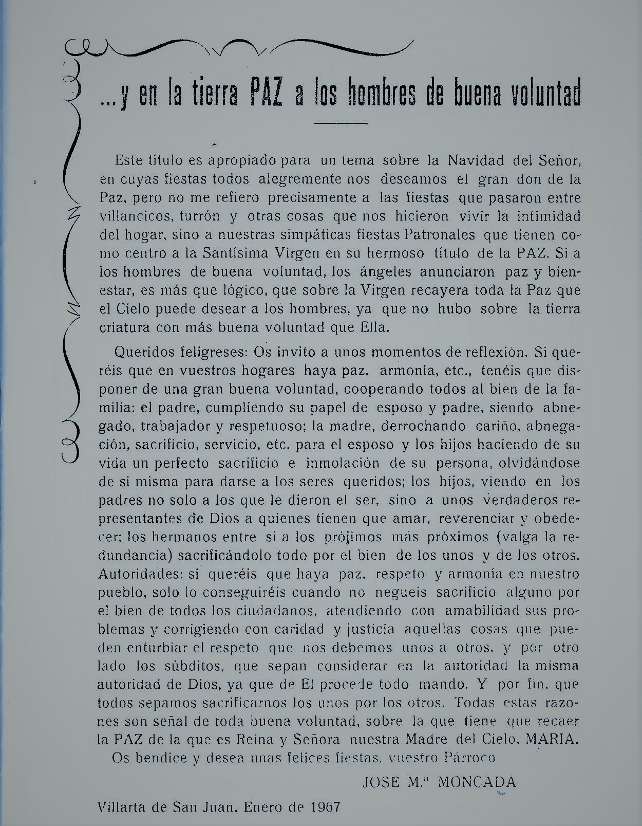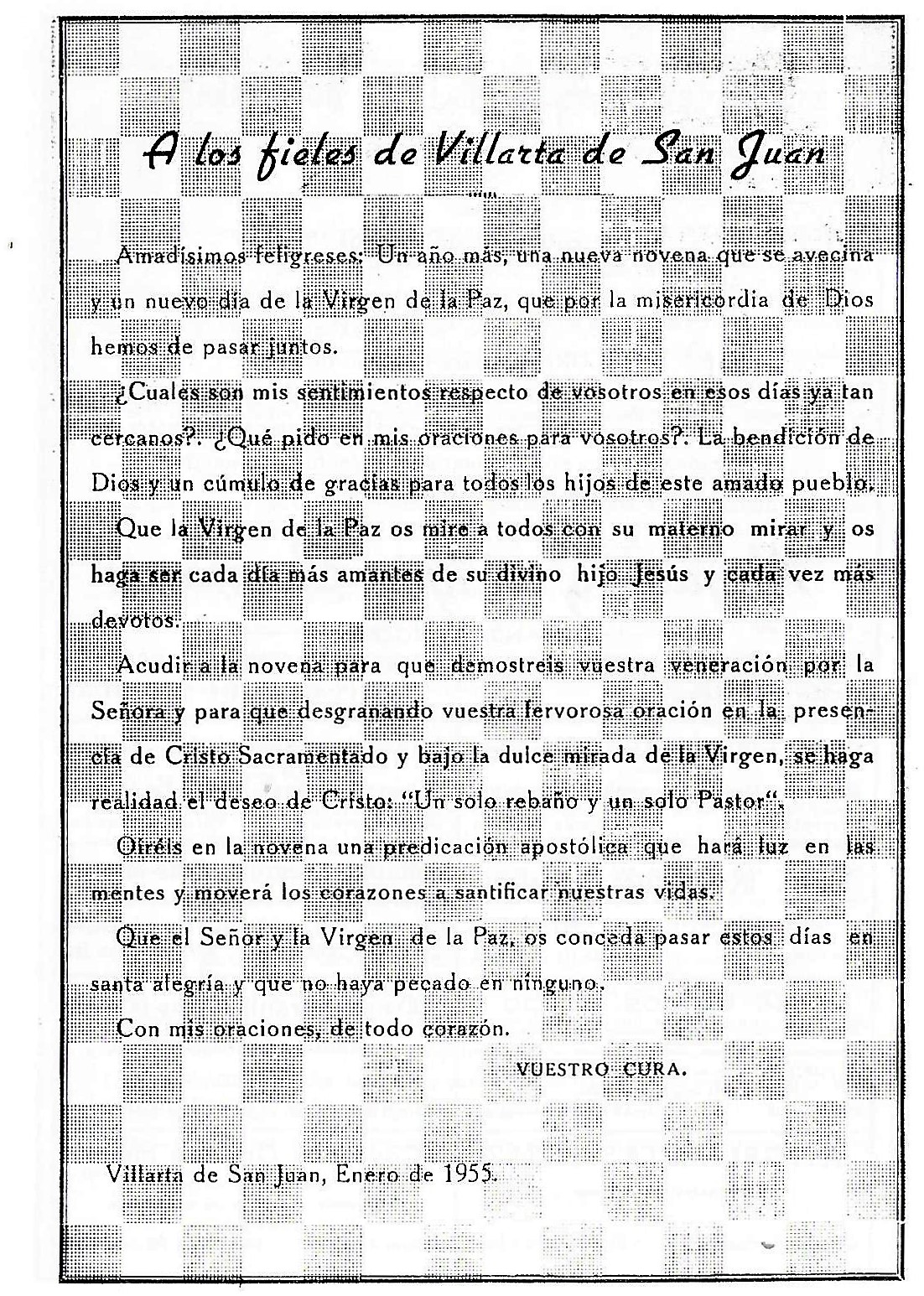 «En primer lugar, amadísimos hijos de Villarta, mi saludo en Cristo, hoy escrito como tantas veces oral.