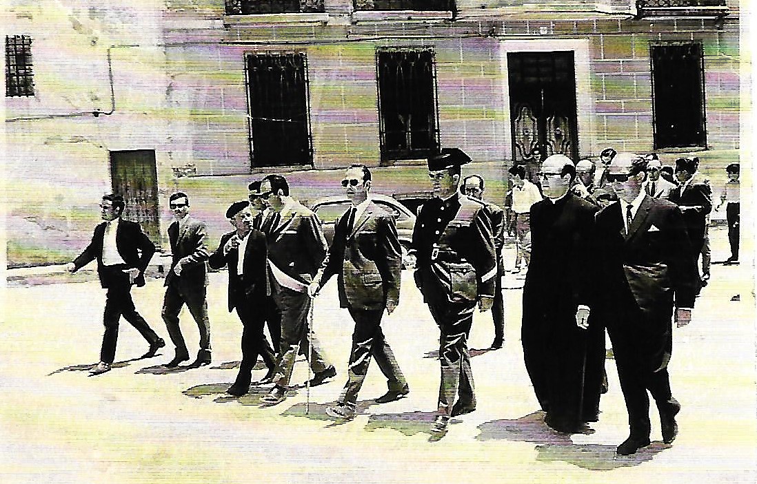 Don Jose María Moncada Ramos, junto al alcalde Cayetano Garrido y otras autoridades (Colección particular)