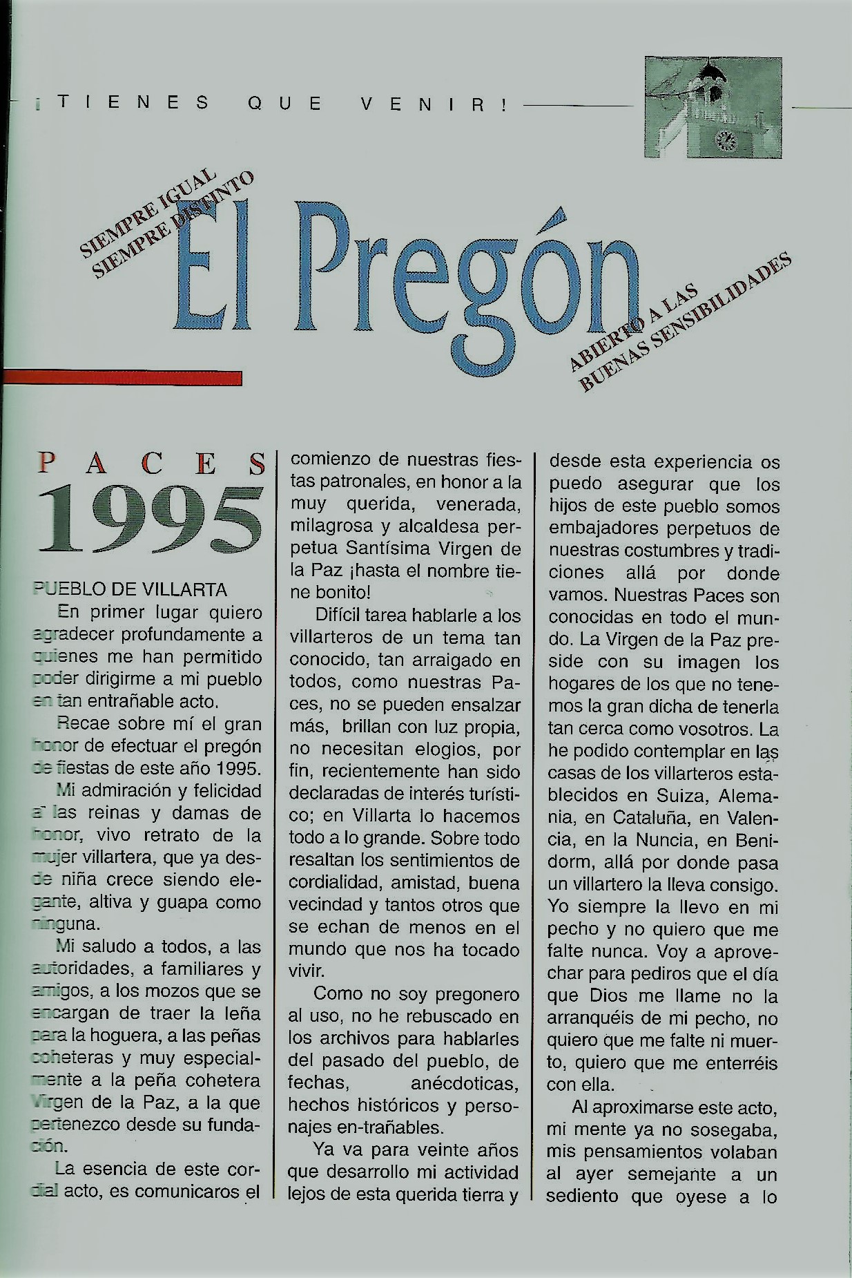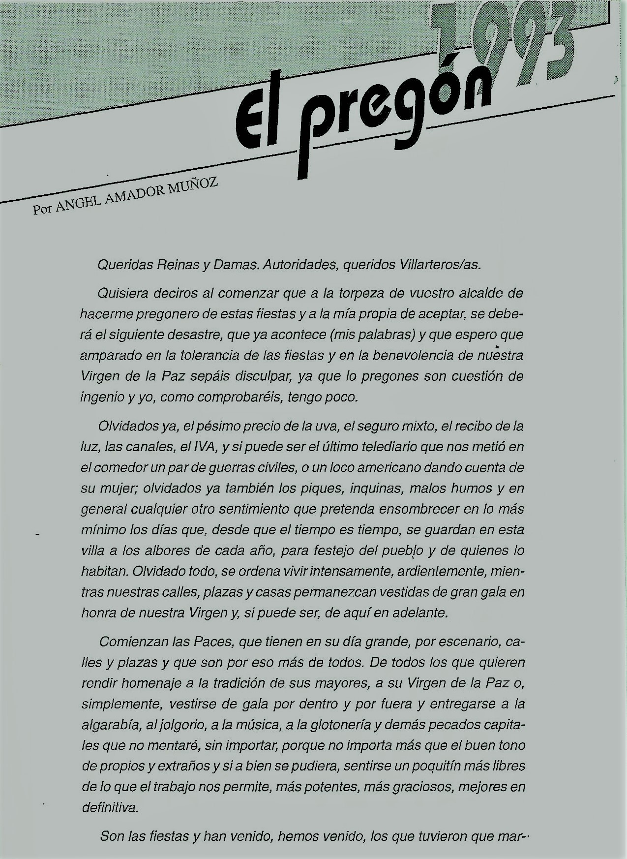 PREGÓN DE «PACES» DE 1993 PRONUNCIADO POR ANGEL AMADOR MUÑOZ