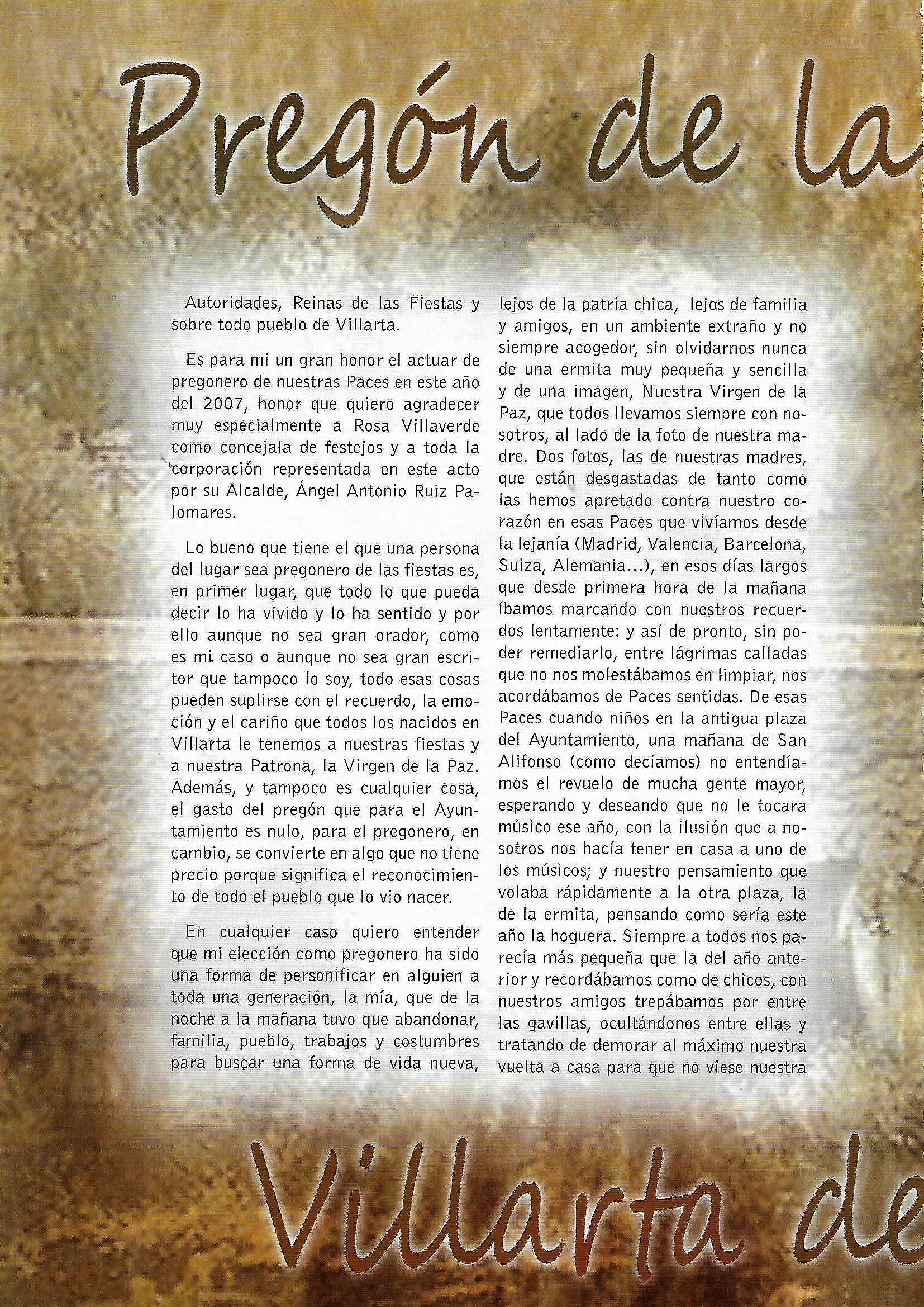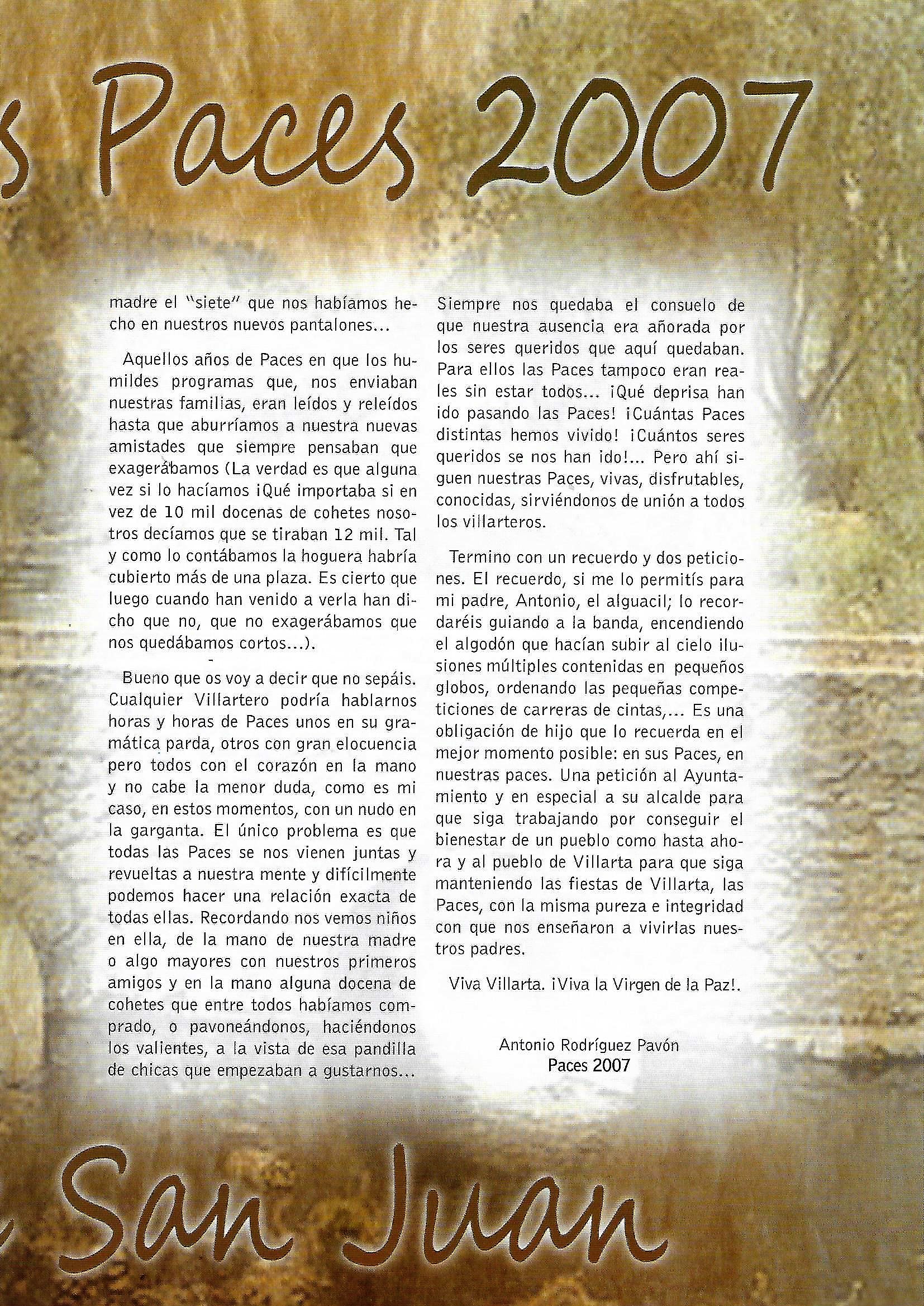 PREGÓN DE LAS «PACES» DEL AÑO 2007, PRONUNCIADO POR DON ANTONIO RODRÍGUEZ PAVÓN