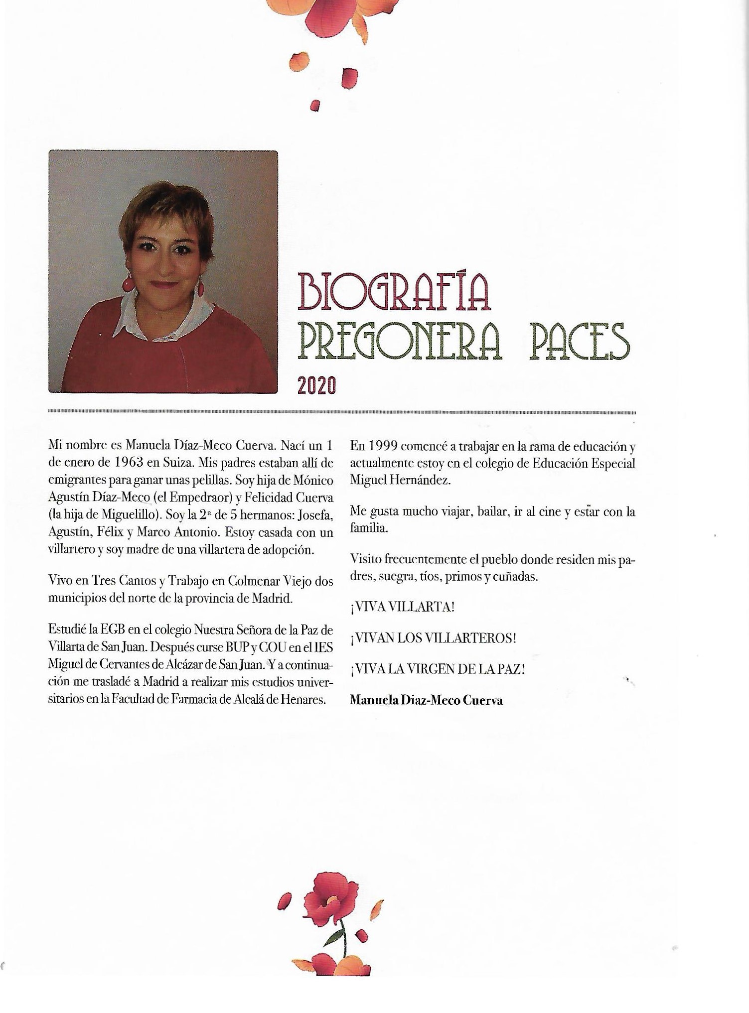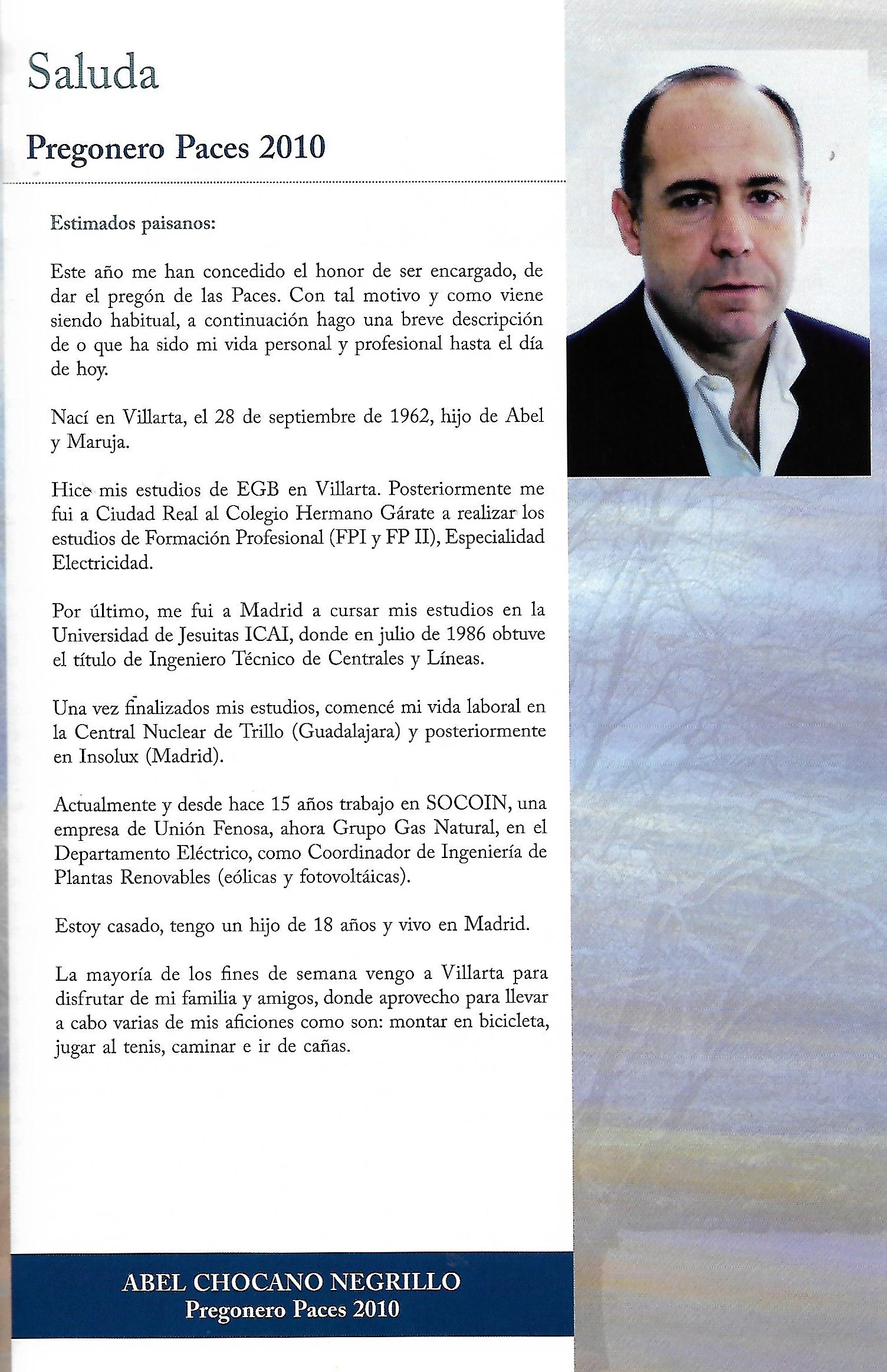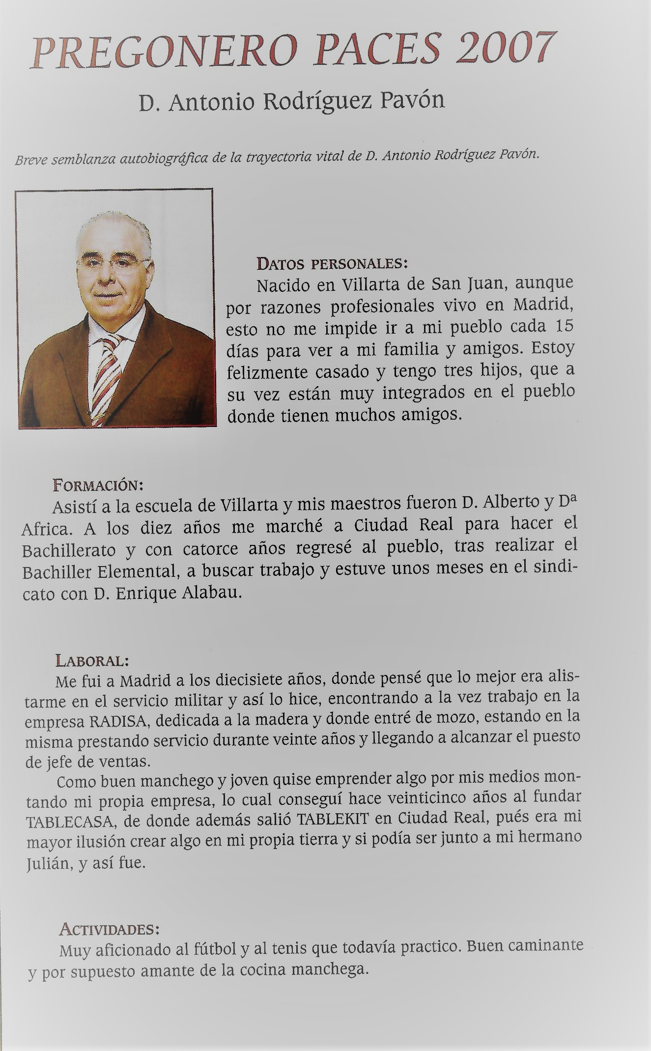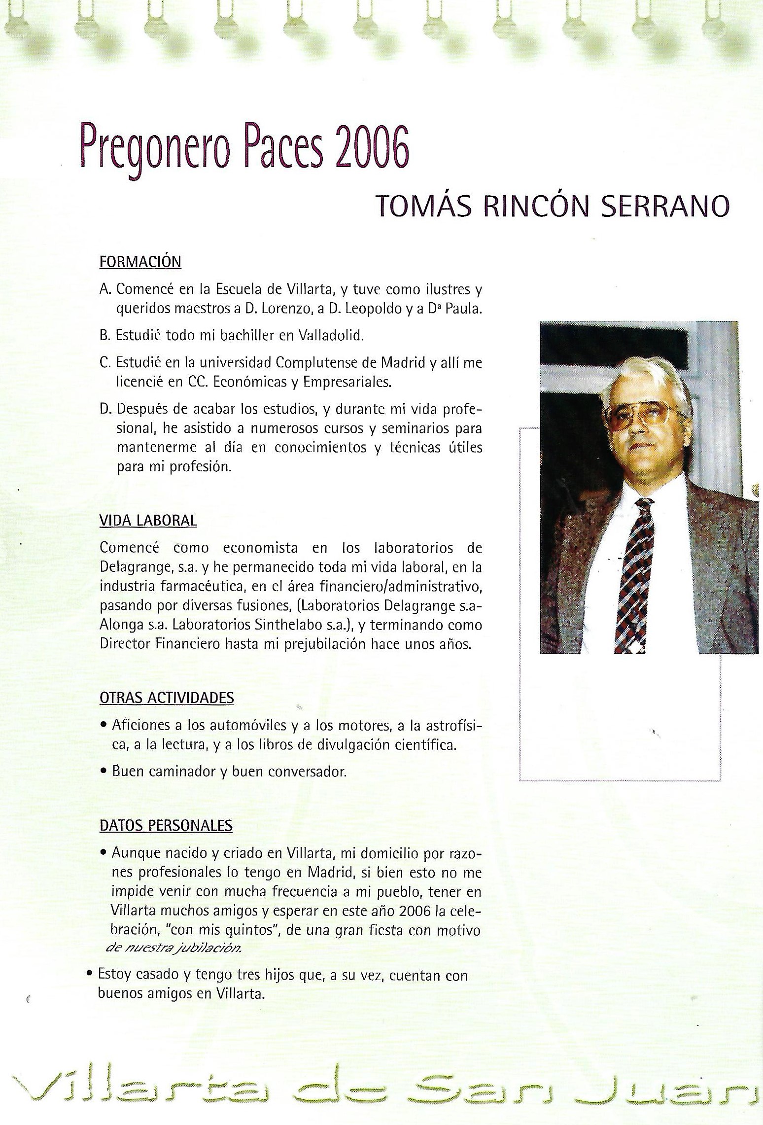 (Desde este año de 2006 se incluye una pequeña biografía del Pregonero de «Paces»)