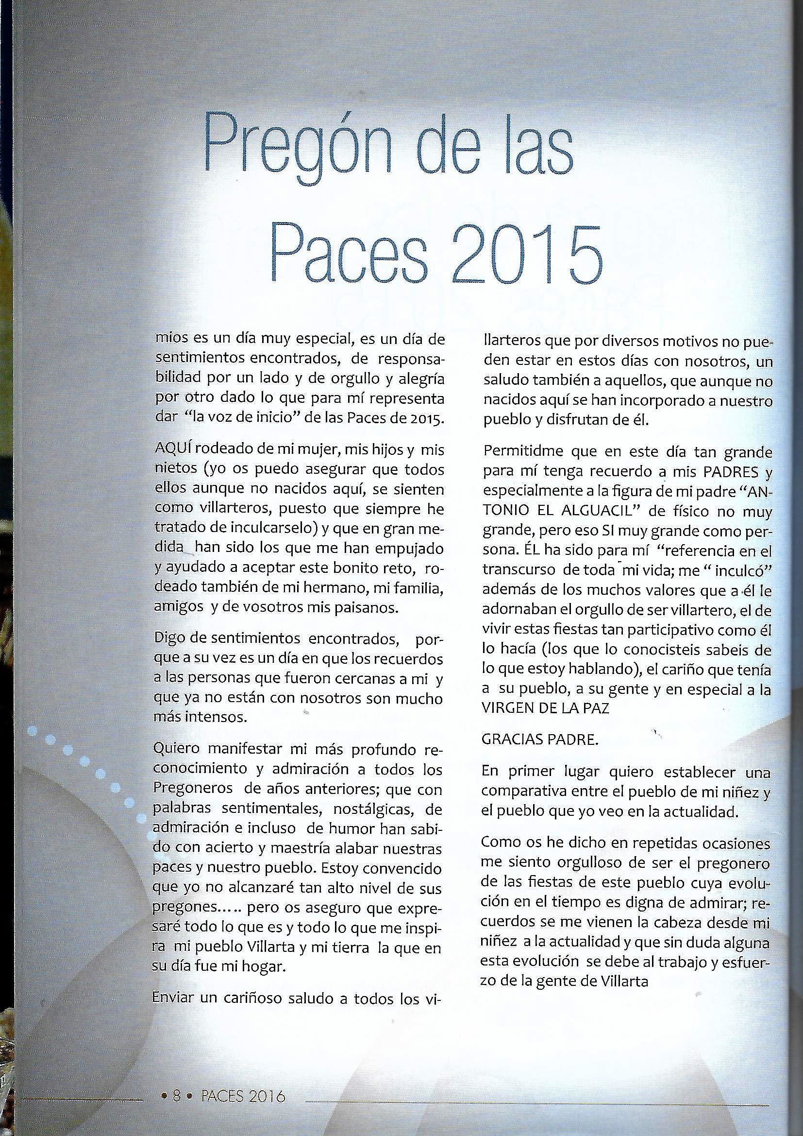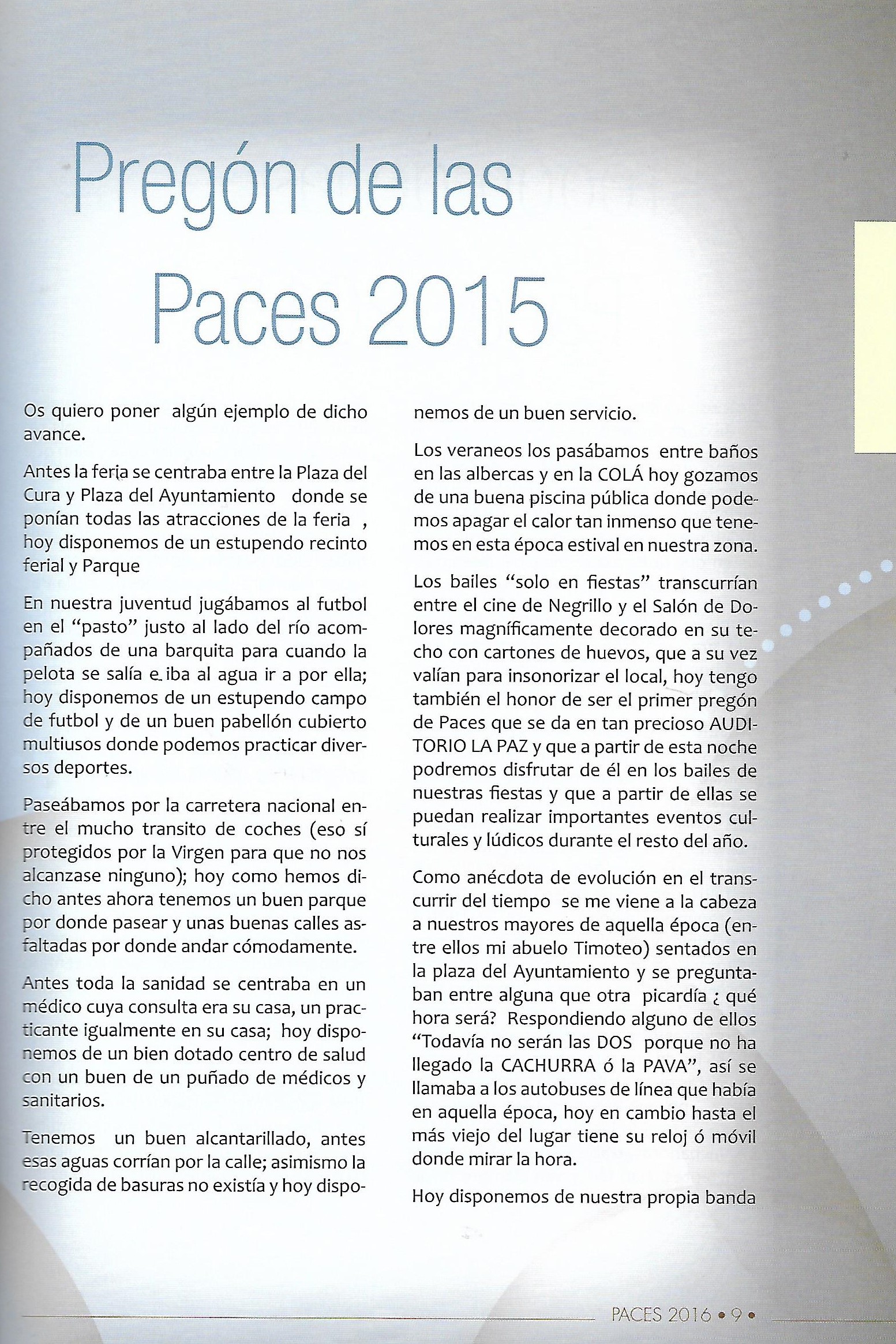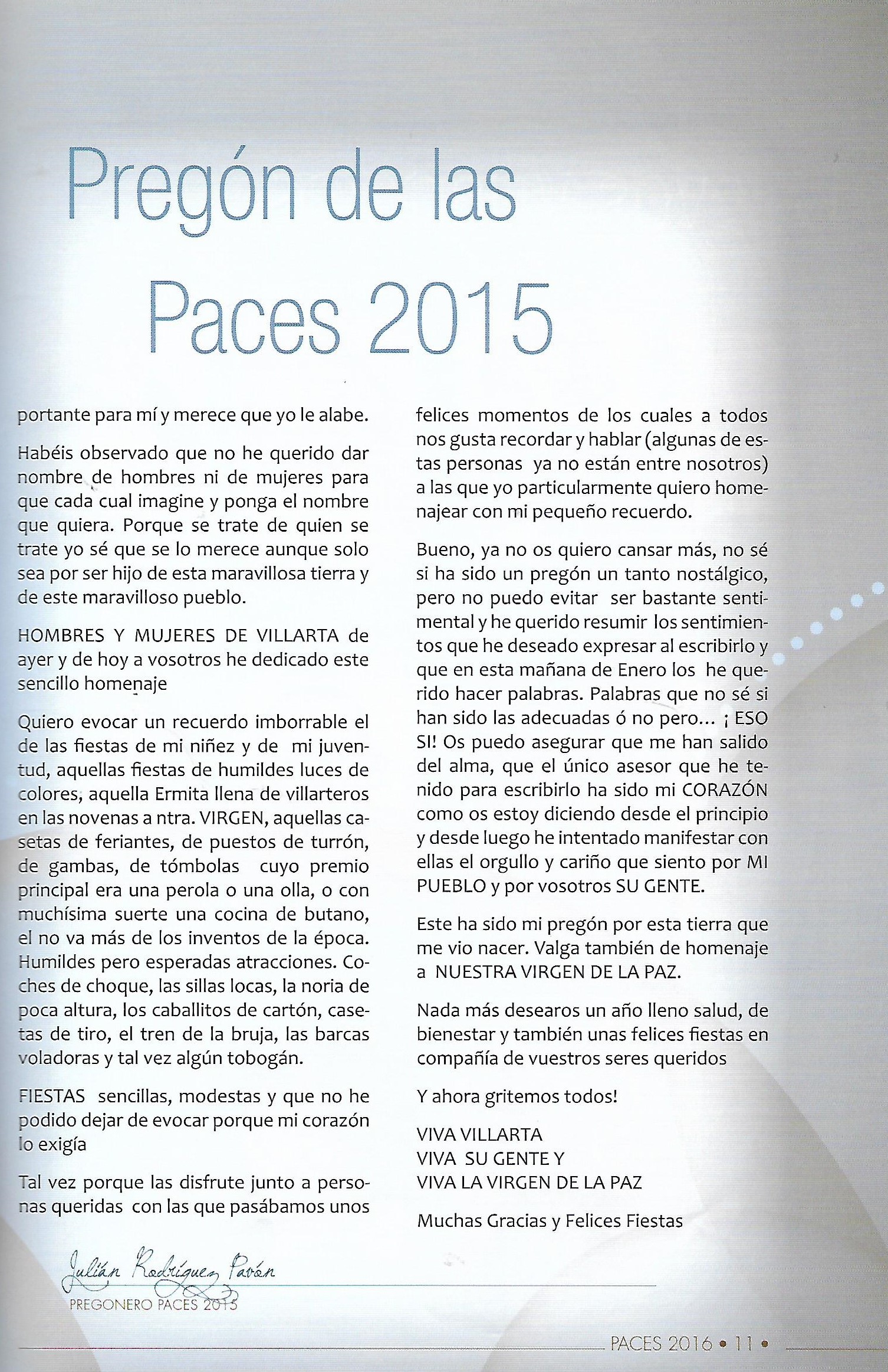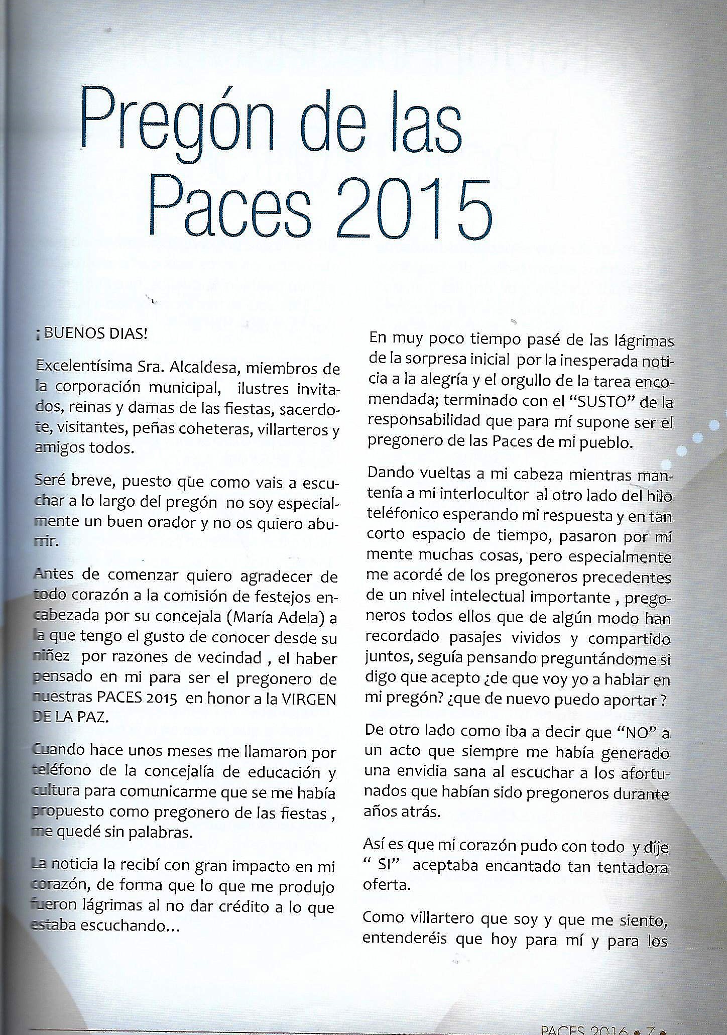 PREGÓN DE «PACES» DEL AÑO 2015, PRONUNCIADO POR DON JULIÁN RODRÍGUEZ PAVÓN