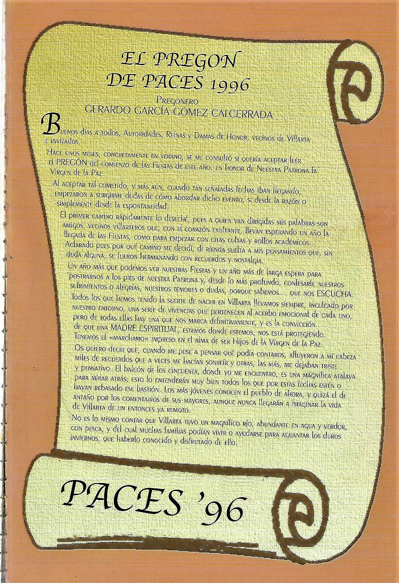 PREGÓN DE «PACES» DEL AÑO 1996, PRONUNCIADO POR DON GERARDO GARCÍA GÓMEZ-CALCERRADA