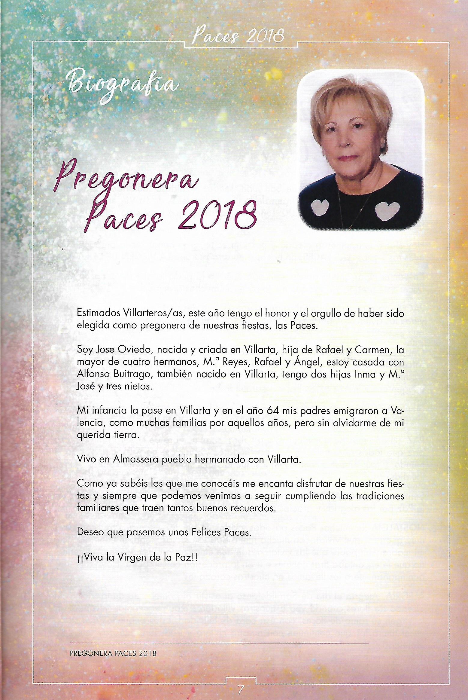 En el programa de este año no se inserta el pregón de Dª Jose Oviedo correpondiente pronunciado el año 2018.