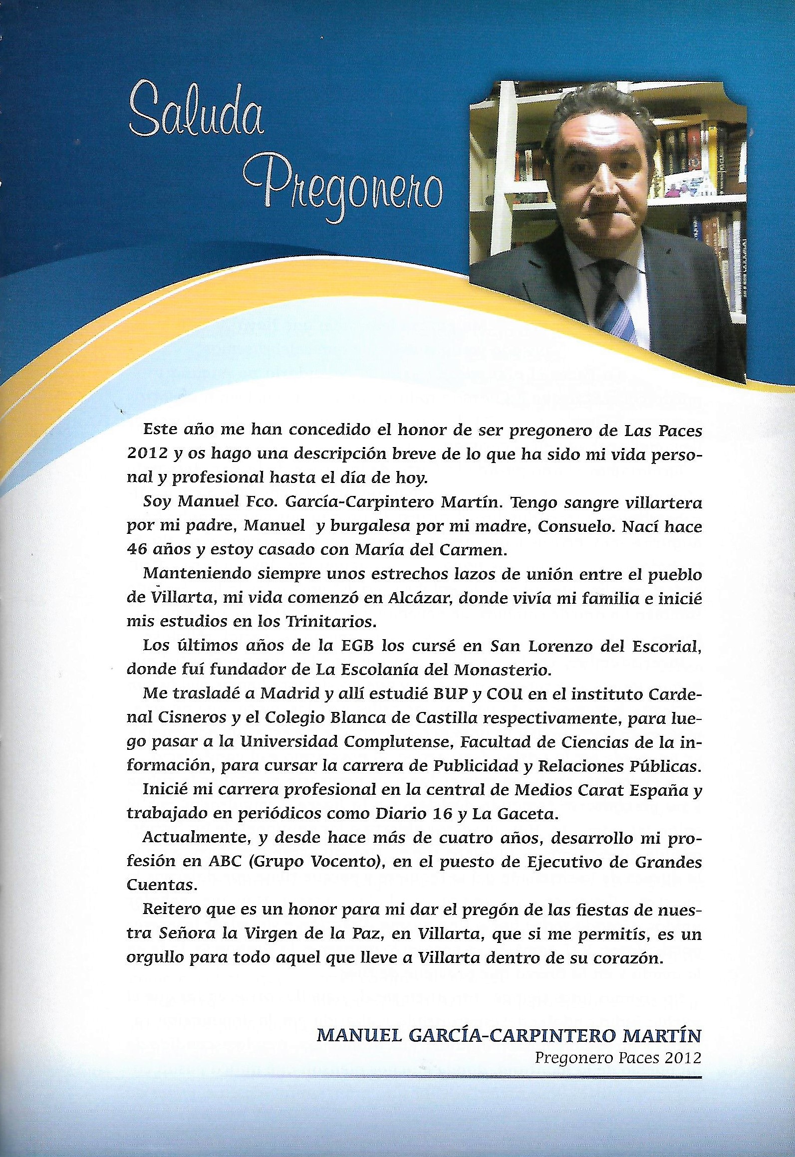 PREGÓN DE » PACES» DEL AÑO 2012, PRONUNCIADO POR DON MANUEL GARCIA-CARPINTERO MARTÍN