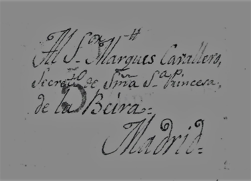 Membrete de envio de uno de los documentos citados a la Secretaría de la Princesa de Beira ((Fuente: AGP. Inventario del Archivo del Infante Don Gabriel. Secretaria. Legajo 294.Iglesia Parroquial)