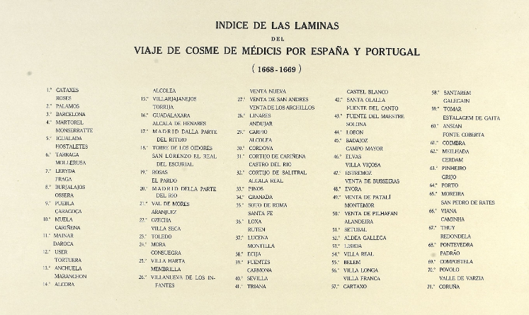 Viaje de Cosme de Médicis por España y Portugal. Indice de Láminas (Fuente: Biblioteca Nacional de Portugal)