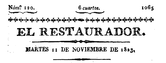 Fig. 3 Portada de El Restaurador de fecha 11 de noviembre de 1823 donde se habla de la llegada del Rey a Villarta.[Fuente: Hemeroteca Nacional digital.BNE]