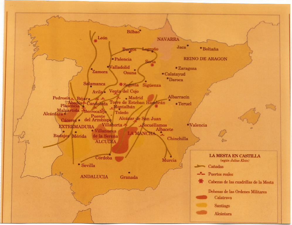 Fig.2 Itinerarios de la Mesta sobre un mapa de Julius Klein
