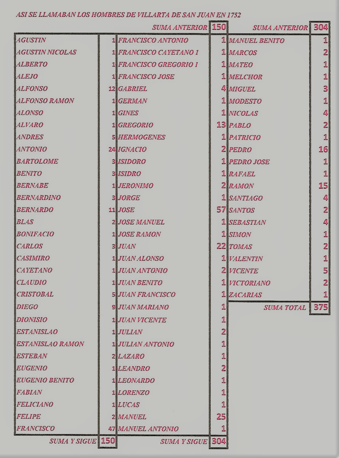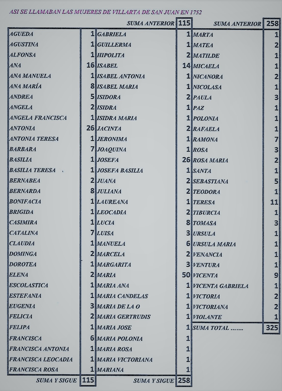 Así se llamaban las mujeres y los hombres de Villarta de San Juan en 1752 (Elaboración Propia)