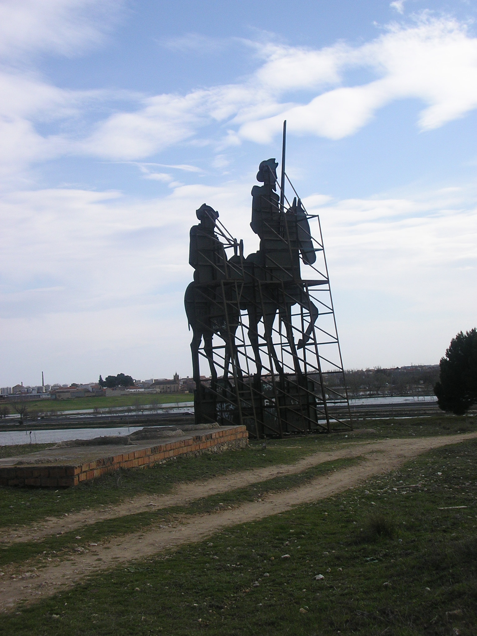 Y nosostros en la ocasión presente pensamos que el escrito aparecido en la revista HISTORIA de National Geographic, hablando de el combate de don Quijote con los molinos de viento, no es correcto porque en Villarta no hubo molinos, aunque a buen seguro, cada día, cada año o siglo que pasa, se oirán las continuas risotadas de Cervantes, en el otro mundo, al leer nuestras nuevas ocurrencias sobre su libro. Seguro que la última ocurrencia sea la obra de Francisco Parra Luna y otros ilustres profesores de la UCM en su busqueda de «El lugar de la Mancha es…El Quijote como un sistema de distancias/tiempos» (En su asombroso trabajo de más de diez años, llegan a la conclusión de que el lugar es Villanueva de los Infantes, que en 1575, no decia pertenecer a la Mancha, sino al Campo de Montiel, bastante más famoso e importante que la Mancha. Ese intenso y continuado esfuerzo, cuando pase algún tiempo, formará parte de la inmensa bibliografía sobre el Quijote y nuestros escritos y el de otros muchos ni siquiera llegarán a formar parte de la misma. Asi, aún sabiendo que muchas condiciones no fueron posibles, pero que si podían serlo, aceptemos la posibilidad de la aventura de los molinos cerca de Villarta y puestos a especificar situemos un posible molino (que históricamente sabemos que nunca hubo) en el pequeño cerro, a cuyos pies rodeándolo se encuentra la cañada real Soriana, buen lugar tambien para la aventura con los yangüeses o con aquel ejercito de ovejas…. Hoy en lo más alto del mismo unas grandes figuras de don Quijote y Sancho nos recuerdan su paso inventado ( como todos los que inventó Cervantes) por una tierra que sí estaba y sobre la cual puso Cervantes a sus personajes.[No sería mala idea que junto a esas figuras se añadiese la silueta de Don Quijote atacando al molino, posiblemente nuestro ayuntamiento podría estudiar esa posibilidad]. Hoy las grandes figuras del cerro ya no luchan contra los molinos, que sí eran gigantes, sino contra unos absurdos grafiteros que quieren dejar sus ¿firmas? sobre las imágenes del Hidalgo y su escudero. Explicando lo que decía Cervantes, Don Juan Antonio Pellicer, Bibliotecario de la Real Academia de la Historia, decía en la primera edición comentada de Don Quixote de la Mancha: «… y parece que el mismo Cervantes lo indica también, quando supone que Don Quixote asi salio de su lugar, caminaba por el campo de Montiel acia el puerto Lapiche, y que luego le sucedio la aventura de los molinos de viento, cuyo sitio señala el itinerario de la Real Academia Española cerca de Villarta. Con efecto, aunque la Argamasilla es del priorato de S. Juan, está en los confines del campo de Montiel, por donde se puede caminar luego que se sale de ella. Añade la Historia. que por ser la hora de la mañana hería (a Don Quixote) a soslayo (de forma oblicua) los rayos del sol. Asi es; pues por estar Villarta entre poniente y norte de la Argamasilla, y la Argamasilla entre oriente y mediodia al que salga de ella por la mañana, especialmente en los meses de julio y agosto, acia puerto Lapice, le herirán a soslayo los rayos del sol» [Edición de El Ingenioso Hidalgo Don Quixote de la Mancha. Nueva Edición corregido de nuevo, con nuevas notas, con nuevas estampas, con nuevo analisis por Don JUAN ANTONIO PELLICER, Bibliotecario de S.M. y académico de número de la Real Academia de la Historia]