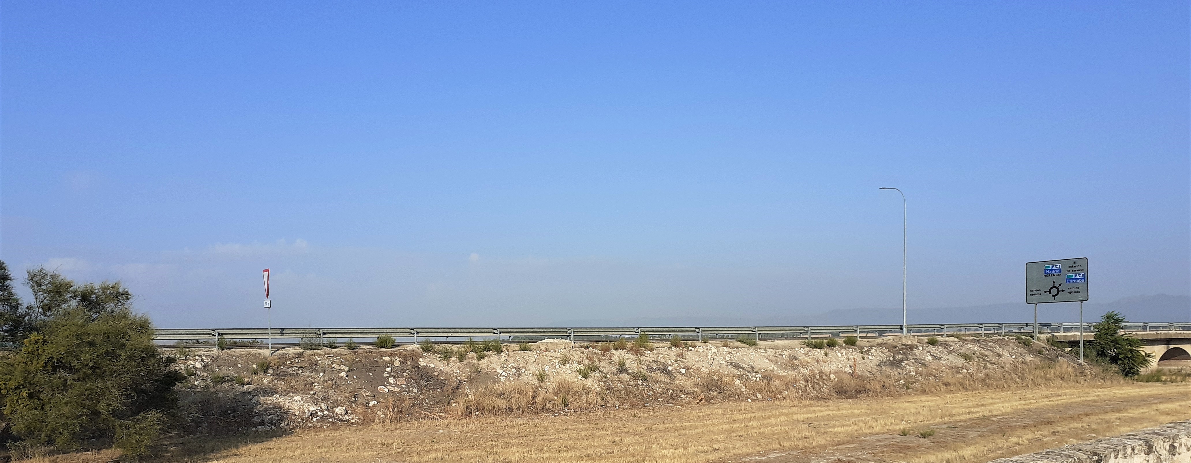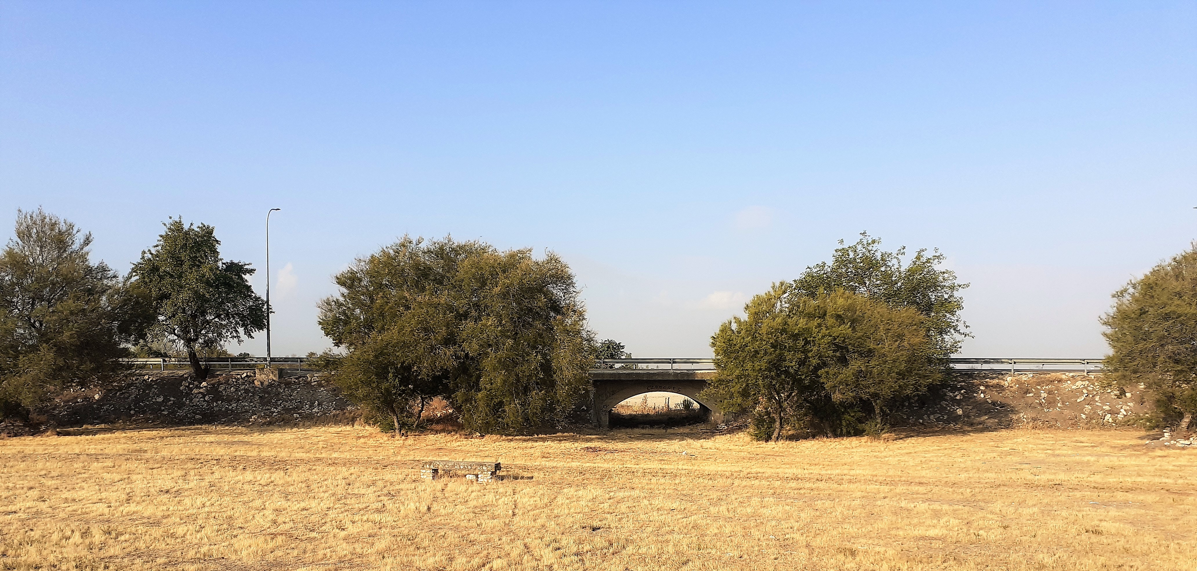 Vista general del puente romano y la N-IV. A la vista de la dirección de ambas es lógico pensar que la citada N-IV tapase arcos del puente romano ( Archivo personal)