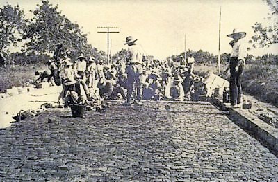 En cuanto a los pavimentos que estarán construidos en 31 de diciembre de 1931, sin relacionar los tramos de los diversos itinerarios y hablando del de Madrid-Sevilla-Cádiz se consideraban terminados 395’70 Kms. de los cuales 16’20 Kms. eran de firme de adoquin, otros 15’20 Kms. eran de empedrado mosaico concertado y blindado, 10’40 Kms. era de hormigon en masa; 10’20 de hormigón asfáltico; 20’80 Kms. de riego asfáltico profundo; 317’80 de riego superficial bituminoso y de Macadan ordinario 5’10 Kms.