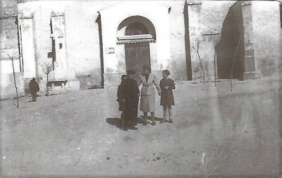 Y en ese pueblo, no tan distinto ni tan distante del de hoy, había que colocar todo lo necesario para darle vida a nuestro libro. Llenar las serpenteantes y tranquilas calles de chiquillos, buscar un lugar donde unos maestros (un maestro y una maestra, no siempre) con escasos medios, además de sus personas, pudieran iniciar, aunque muy brevemente, a una multitud de niños que junto a ellos se hacen la foto. Niños calzados o descalzos, mal o bien vestidos, repeinados o mal rapados , de los cuales no sabemos su nombre pero si que son nuestros propios orígenes. Esa escuela fugaz y, a pesar de todo, acogedora para muchos de los niños, sería la indispensable academia de un poco mal leer y escribir y a veces sólo para aprender a dibujar la firma (solo los chicos que las chicas, luego mujeres, no necesitaban firma alguna que con la del marido tenían bastante). Desde luego por no haber no había ni monotonía de lluvia tras los cristales, como diría el poeta. Un pueblo utilizaba una iglesia antigua para el obligado cumplimiento religioso y una pequeña ermita a donde la devoción los llevaba en volandas para postrarse a los pies de su Virgen de la Paz. Un pueblo, casi mejor diríamos una familia ( al comenzar el siglo XX apenas llegaba a los mil habitantes) que veía como sus mas pequeños crecían, a pesar del triste y cotidiano trailón de las campanas de la iglesia, a pesar de las penurias y de los duros trabajos. Y así, poco a poco, después de esa Primera Comunión que todos recibían pero que muy pocos podían celebrar, iban esos niños y niñas cubriendo todo lo ancho del paseo dominguero o festivo de la carretera. Ellas risueñas, sintiéndose contempladas, embelesando; ellos al roce ( asi le llamaban al paseo, como en otros pueblos), remoloneando torpemente, haciéndose notar en el continuo paseo arriba, paseo abajo. Eran las pandillas de amigos y las de las amigas. De pronto una mirada, una sonrisa, y las pandillas comenzaban a deshacerse. Primero es un joven entre muchas chicas, después, poco a poco, se van quedando solos los dos novios ( bueno lo de solos era un decir que siempre hacia falta la necesaria carabina). El paseo, en el buen tiempo, se prolongaba hasta el puente y sentados sobre las ya medio derruidas paredillas, pensaban o soñaban con su futuro. Pero primero había que pasar las pruebas obligadas: Para él, la mili; para ella la espera, arañando tiempo al tiempo para preparar el ajuar.