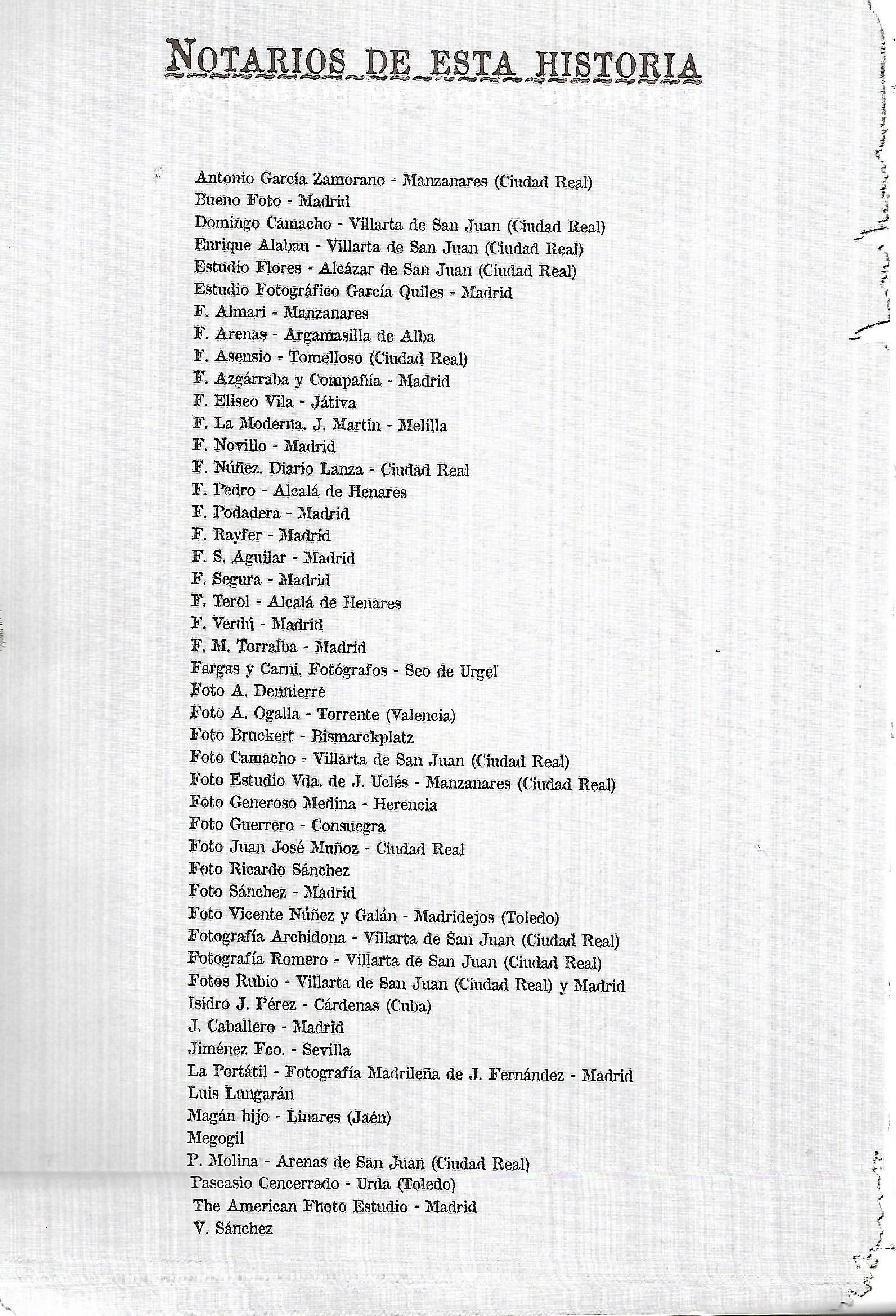 Relación de los fotógrafos autores de las fotos que aparecen en el libro