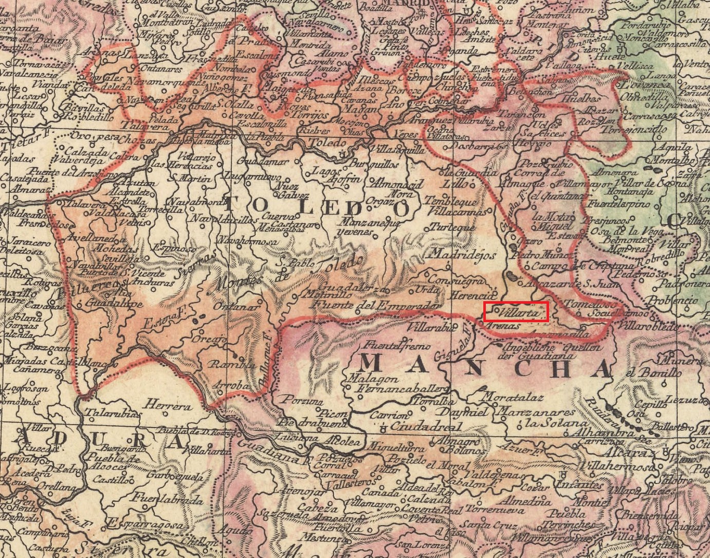 En cualquier caso el mapa que elabora Tomás López en uno completo de Castilla la nueva, en el que señala las provincias de Toledo, La Mancha, Cuenca y Guadalajara