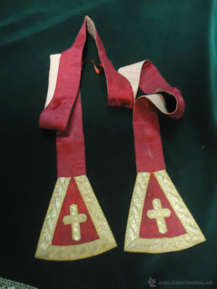 Primeramente //treinta y cuatro baras y dos tercias de fleco anchoenrrejado de seda color de oro para guarnecer los cinco frontales, las capillas de las dos capas pluviales, los dos paños de fascitol y las dos bandas de hombros por sus extremos, y las dos mangas de cruz parroquial por abajo a diez reales cada una// trescientos cuarenta y siete reales y doce maravedies………….. 317 rs. y 12 mrs.