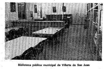 [Antes de seguir quiero recordar a Juan José Camacho, «Camacho», recientemente fallecido que, aunque natural de Manzanares, dejó su corazón abierto a Villarta, el pueblo que él eligió para su vida, desde que empezó a jugar al futbol como fichaje del Villartense y del que habló «largo y tendido» a traves de sus crónicas en el diario Lanza» y de todo lo que registró de Villarta, con sus cámaras, y que sus hijas siguen registrando]La foto, recoge el momento en que Don Manuel López de la Nieta, párroco de Villarta procede a la bendición de las instalaciones, ante Julio Isla, alcalde de Villarta y las atentas e ilusionadas miradas de María Teresa González, coordinadora provincial de Bibliotecas y de Macri Isla, concejal de Cultura. Las imágenes que recogía el Lanza no nos dejaba ver la realidad de aquella primera ubicación de la Biblioteca. Realmente no había muchos locales en Villarta de San Juan, con poca inversión, pudiera ser centro cultural y aunque entonces no se revisase la historia de aquellas viejas escuelas, ya clausuradas, muchos las recordarán con cariño y a su memoria vendrán la memoria de tantos amigos como por allí pasaron y sobre todo la figura de antiguos maestros. Creo recordar que esta fotografía se corresponde con la, escuela de las «Chicas». Estos locales eran claros y luminosos, sus amplios ventanales dejaban entrar la luz adormecida por aquellos «años del hambre» y miseria donde los colores servían para identificar a unas personas de otras hasta el punto de que el rojo perdió su nombre para llamarse durante algunos años «colorado». Esas viejas escuelas pasaron, poco a poco, al recuerdo llevándose asi mismo la memoria de maestros que en ella estuvieron. En una de sus aulas en la pared de la calle, uno de los maestros, abrió un pequeño hueco donde colocaba frascos donde conservaba pequeños reptiles sobre los que luego hablaba a sus boquiabiertos alumnos. Al fondo de la clase, en un armario empotrado de obra en la pared se guardaban con llave los elementos más valiosos de la escuela: mapas, compasas de tiza, tizas de colores, etc. y en el centro de la clase, una antigua estufa de carbón y a veces solo sarmientos que atemperaban las frias temperaturas de los largos meses de frio.