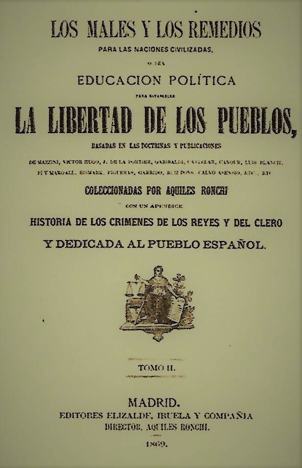 Portada del libro Educación Política para establecer la libertad de los pueblos de Aquiles Ronchí. Pág.226 se habla del Papa San Antero.