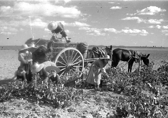 Así que, según decía el viejo refrán, hoy 15 de agosto, se empezaban a preparar las cosas para las vendimias. Cierto es que, en no muchos años, las cosas ya no son como antes, y llegada esta fecha, en que la cosecha de cereales, buena o mala, estaba recogida en los graneros y la paja en su pajar, venían unos días de poco ajetreo en el campo que agradecían bien los agricultores, que no solo este año hace calor «de muerte». Sólo la humedad de los «bajeros» y las huertas de la vega del Gigüela, veían el ir y venir de los hortelanos que recogían los últimos frutos de sus huertas que por entonces las cosas iban mas adelantadas, mientras que los labradores empezaban a la sombra de algún árbol, a revisar y recoser, las espuertas de esparto y las «seras», también de esparto que el año anterior, al terminar la vendimia, solo les habían quitado la tierra porque el mosto había secado la tierra y se había pegado al esparto.