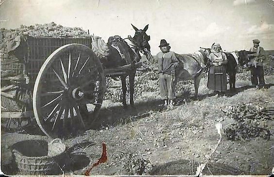 Lo que mas tiempo les llevaba era repasar las asas y había que recoserlas bien y sin prisas, que algunos años, sin poder evitarlo, algun vendimiador se quedaba con las asas en la mano y la espuerta «tirá» por el suelo y las uvas entre la tierra. Luego, terminada la vendimía, algunos comentaban cuando venga algún temporal las iremos recosiendo con calma, y lo decían convencidos, todos los años, al terminar la vendimia, sin acordarse que nunca lo hacían porque, luego, el año pasaba corriendo con mil menesteres imprevistos y cuando se daban cuenta, todo era correr, para dejarlo todo a punto. Había que repasar los arreos que, algunos, ya tenían sus años, el carro al que algún varal había quedado un poco vencido por cargar mucho el carro y sobre todo echarle un detenido vistazo a las ruedas que tener que carretear por esos caminos, llenos de «rodás», tan infernales que nunca se parcheaban; algunos, aunque fuese el camino más largo, buscaban salir a las carreteras que entonces no tenían mucho tráfico.