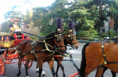 Llegada de un embajador montado en un elegante carruaje de «tiros largos» [Fuente: Caminando por Madrid de Carlos Osorio]