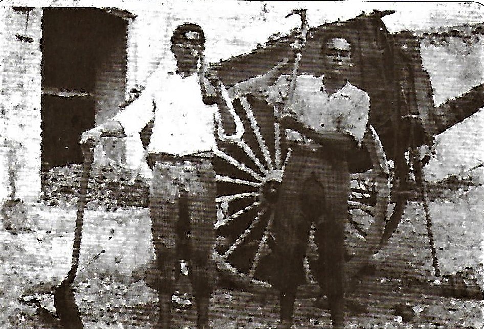 «CARRILLO» o Polea. Mecanismo que consiste en una rueda giratoria de borde acanalado por el que se desliza una cuerda o cadena y que sirve para mover cosas pesada o de cierto volumen. En lo alto de la piquera había un grueso palo sujeto a la pared perpendicular a ella, como se aprecia en las fotografías donde se enganchaba el «carrillo» o polea con el cual se subía la paja en seras donde eran recogidas por los que estaban dentro del pajar encajando bien la paja. Este «carrillo» era la habitual polea para sacar agua de los pozos.