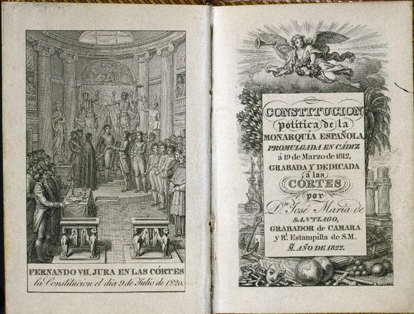 Jura de la Constitución por el rey Fernando VII, el 9 de julio de 1820(Señalamos que se trataba de la Constitución promulgada en Cádiz el 19 de Marzo de 1812 más conocida como La Pepa)