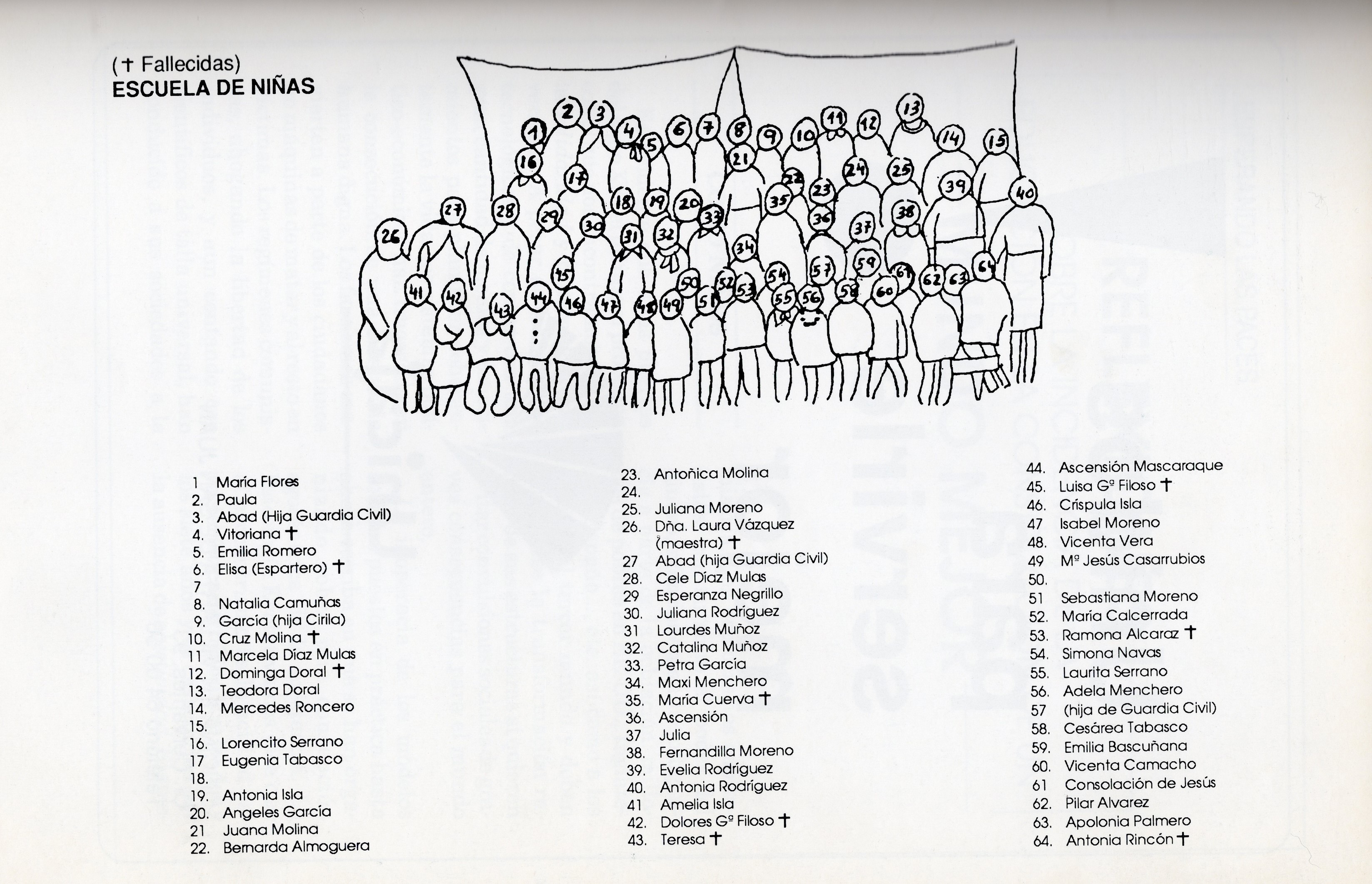 Nombres de los alumnos ( La cruz es de los ya fallecidos cuando se publicó la foto en el programa de festejos)