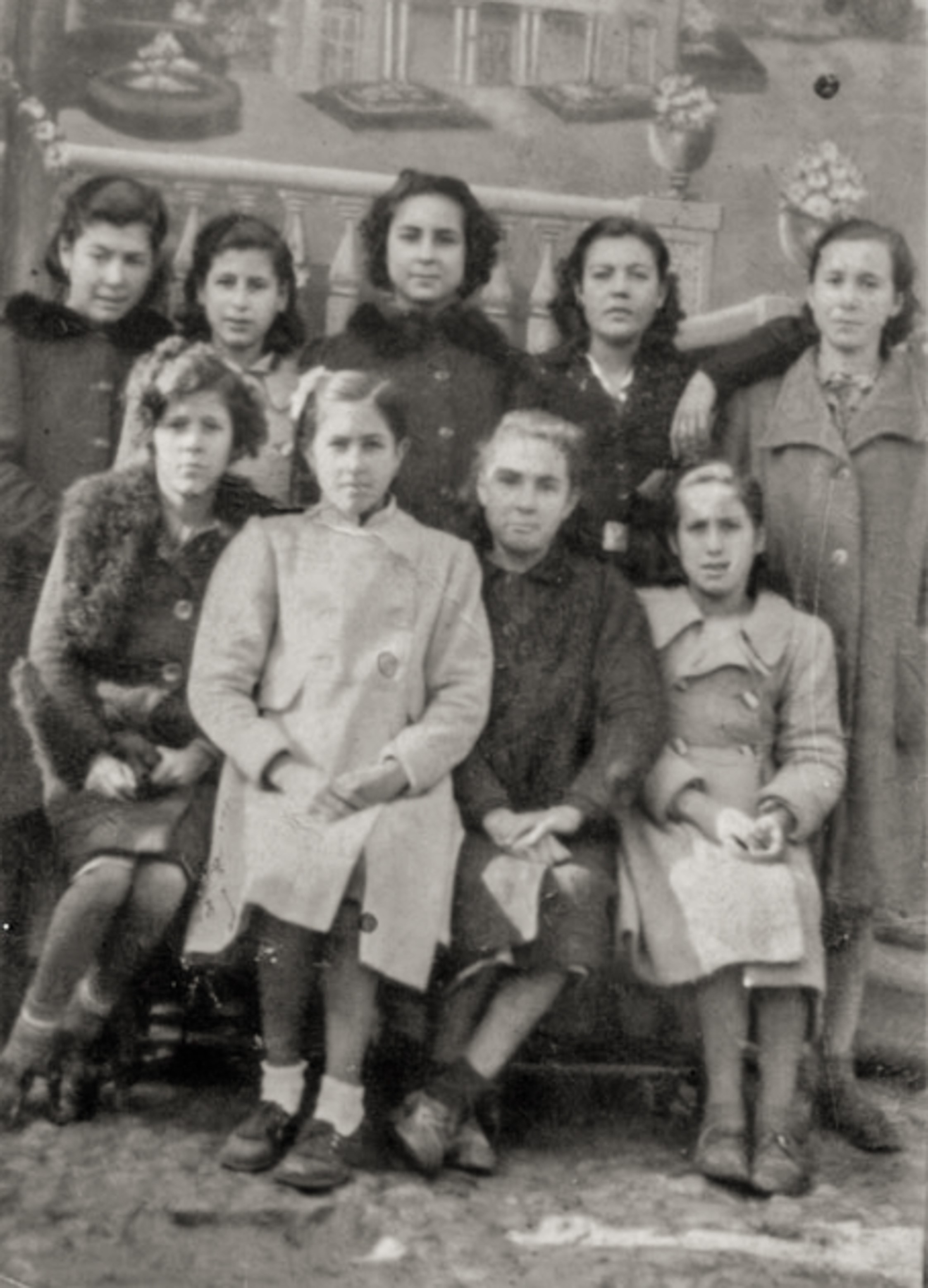 1941. Amigas. De izquierda a derecha. Luisilla Ligero, hermana de Ferminaq, (¿?), Constanza, Adela Menchero, Olimpia Moreno, Laurita Serrano, Anita Garcia-Filoso y Fermina