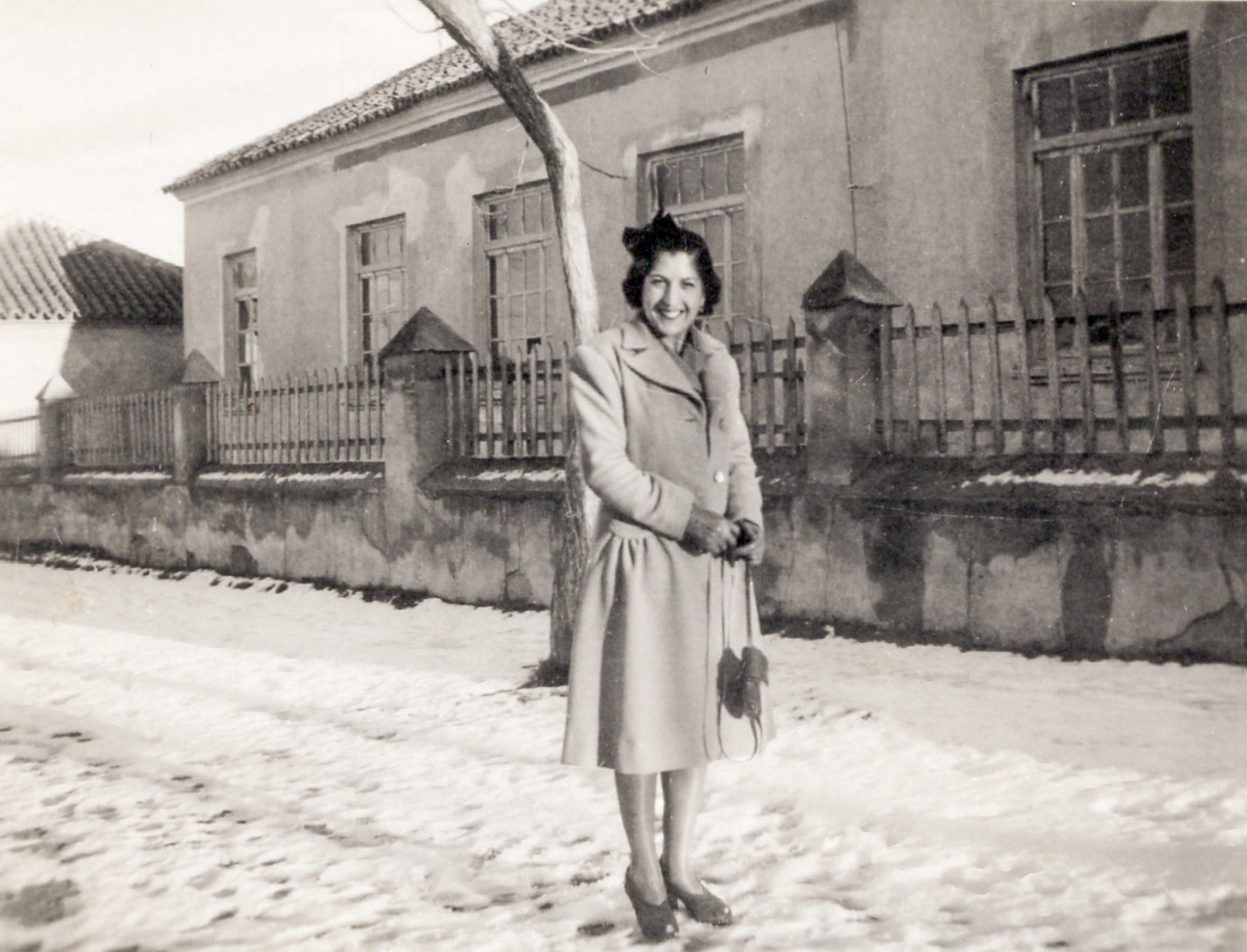 1942 Rosario Serrano y la nieve en Navidad (A su espalda las antiguas escuelas)