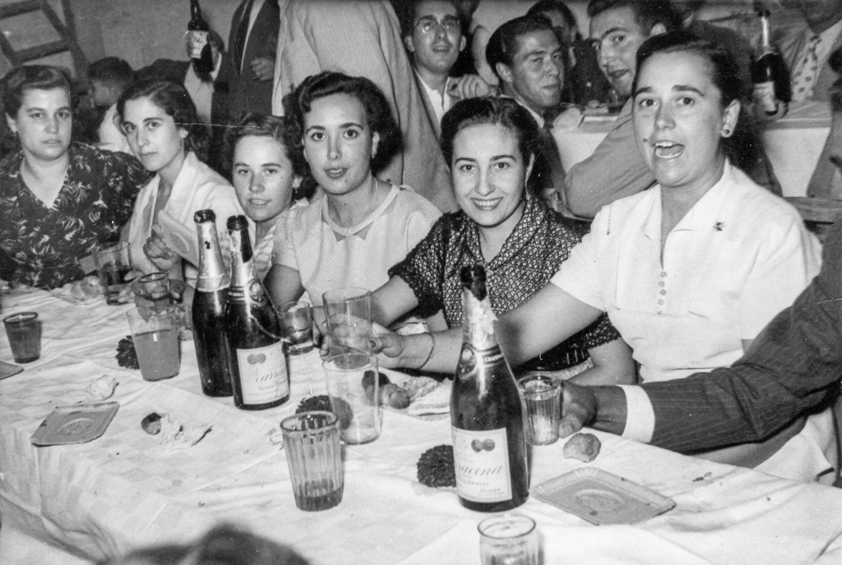 1950. En la boda de Lolita Isla. De izquierda a derecha: Pili Guzmán, Laurita Serrano, Mari Carmen Molina, Julita Jiménez, Ofelia Isla y Mari Menchero.