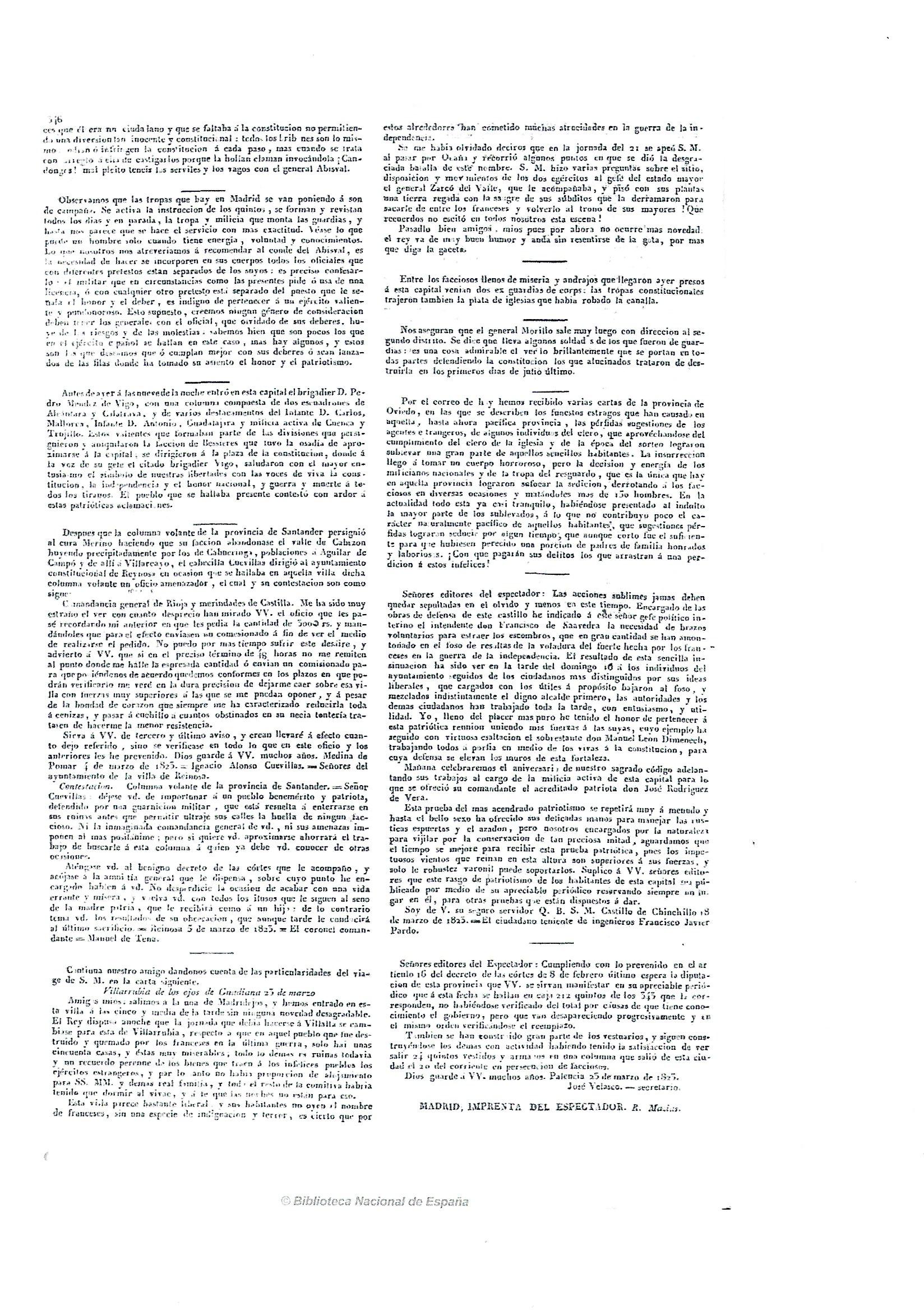 Página de El Espectador del nº 711 de 26 de marzo de 1823 (Fuente Hemeroteca Digital BNE)