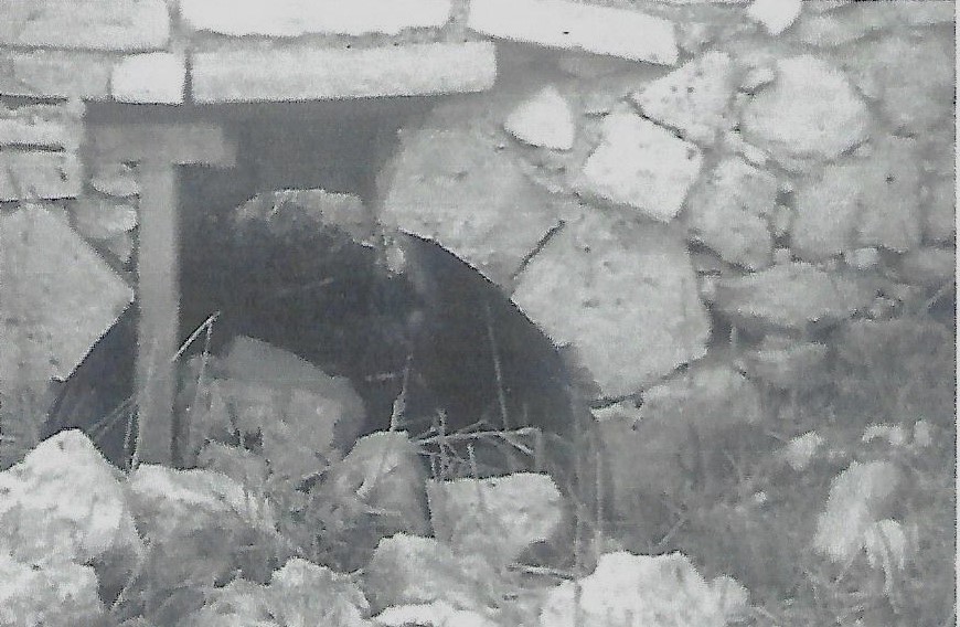 Arco del puente «restaurado» tras haber sido destruido parcialmente por la Confederación Hidrográfica del Guadiana como consecuencia de una de las inundaciones del río Gigüela en la década de los setenta del siglo pasado.( La «reconstrucción» también fué realizada por la propia Confederación (Fuente: Archivo personal).